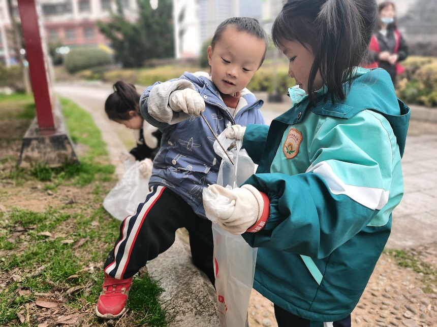 本网讯 2月28日上午,东坪镇泥埠桥幼儿园小班段幼儿开展“我是环保小卫士——走进社区捡垃圾”活动。 “垃圾不落地,分类更美丽”,孩子们一路拾垃圾一路喊着响亮的口号走出幼儿园。到达了羽星广场,以班级为单位分散开来捡垃圾。每个孩子争先恐后寻找着地上和绿化带里的垃圾,神情就像猎人寻找猎物一样那么专注,那么仔细。一双双稚嫩的小手将地上的垃圾捡起,放进手中事先准备好的红色垃圾袋中。“哇!这里藏着垃圾!被我发现了!”有的捡到了隐藏在草坪里的糖果纸、口罩;有的捡到了小树丛里的苹果核、废纸、空瓶子等。三五成群的竞相比赛捡垃圾,个个都是环保小卫士。引导小朋友对捡到的垃圾还进行分类,小朋友们初步懂得了哪些是易腐垃圾、哪些是可回收的、哪些是其他垃圾、哪些是有害垃圾……… 通过此次活动,孩子们知道了保护环境要从我做起,从身边的小事做起,从不乱扔垃圾做起,在孩子的心中埋下环保的种子。同时,孩子们用自己的实际行动感染着过往的每个人,呼吁每一个人规范好自己的行为,提高环保意识、倡导垃圾分类,共建美丽家园。