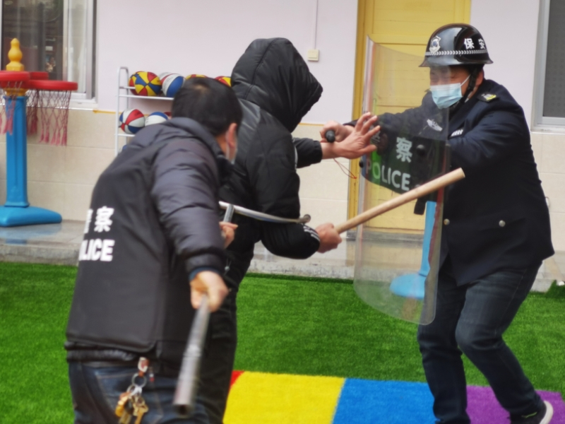 本网讯 2月24日上午,烟溪镇中心幼儿园进行反恐防暴应急演练。 演练开始,安保人员发现异常情况后,立即阻拦并报警。教师即刻带领学生返回教室,关闭门窗做好防护准备。安保人员利用钢叉、盾牌等反恐防暴警械,迅速制服持刀“暴徒”,并将其快速带离现场,及时排除了险情。 据悉,演练前,各班开展了反恐防暴安全教育,在活动中幼儿认真学习增强自身防护意识。 在此次活动中,全园师生巩固了反恐防暴安全知识,增强了师生防护自救能力,烟溪镇中心幼儿园将以此为契机,继续开展系列安全教育和演练活动,并将安全教育贯穿于幼儿的一日生活,切实提高师生的安全防范意识。