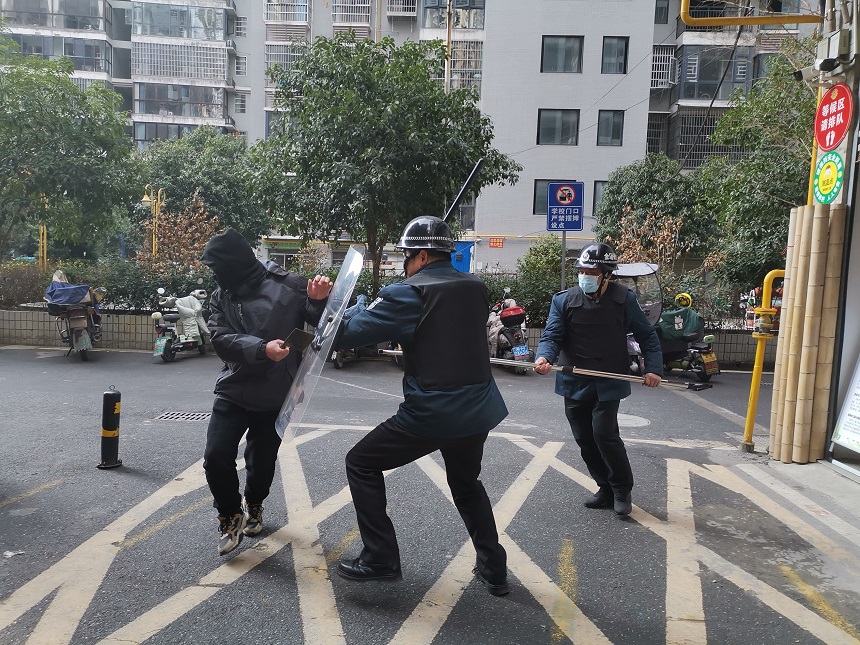 本网讯 一名手持“菜刀”的歹徒伺机闯入幼儿园,两名保安立刻手持钢叉和防护盾进行阻拦,同时吹响警报哨声并开启一键报警……2月24日,东坪镇泥埠桥幼儿园开展了“安全进校园,携手筑平安”防恐防暴演练活动。 随着警报响起,各班教师迅速放下手中工作,停止一切活动,组织幼儿安全撤离和躲避。同时,教师快速反锁门窗,拉上窗帘,堵住门口,防止歹徒闯入班级。在保安的合力围堵下,歹徒最终被制服,警报解除。老师对幼儿进行了情绪安抚工作,同时告诉幼儿面对突发危险时的应对方法。 泥埠桥幼儿园将继续把安全教育做到常规化,保证师生在园安全。