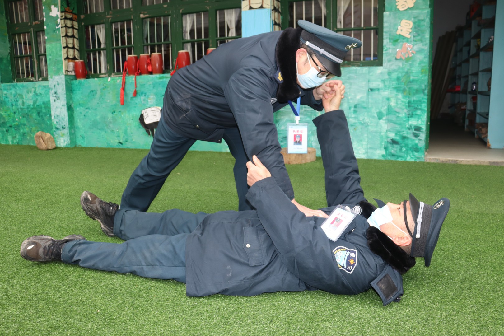 本网讯 2月14日上午,东坪镇吴合智多星幼儿园组织开展保安专项技能演练活动,内容包括幼儿入园流程、相关器械使用、一日巡查以及保安工作中常见情况的应对等。 岗位技能展风采 在入离园实操中,保安着装规范、佩戴整齐,“三大步伐”和敬礼、稍息、立正等动作规范,精神饱满,展现了良好的精神风貌和娴熟的职业技能。 实战演练促提升 进行了安保装备八件套的使用、监控视频的回放、一键式报警器的使用及擒拿术等。保安人员在操作过程中规范有序,只有操作流程烂熟于心,工作才能得心应手。