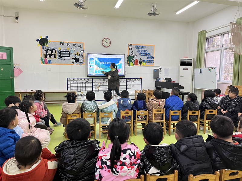 各班教师根据幼儿年龄特点,利用视频、PPT课件、禁毒防毒儿歌、讲述故事的形式让幼儿了解新型毒品的外表具有迷惑性,擅长“伪装”,可能与日常生活中的常见物品相似,从而让幼儿提高警惕性,不吃陌生人给的东西。并引导他们争做小小禁毒宣传员,通过“小手拉大手”的方式,把禁毒知识带给身边的亲朋好友,营造人人知法守法的禁毒氛围。