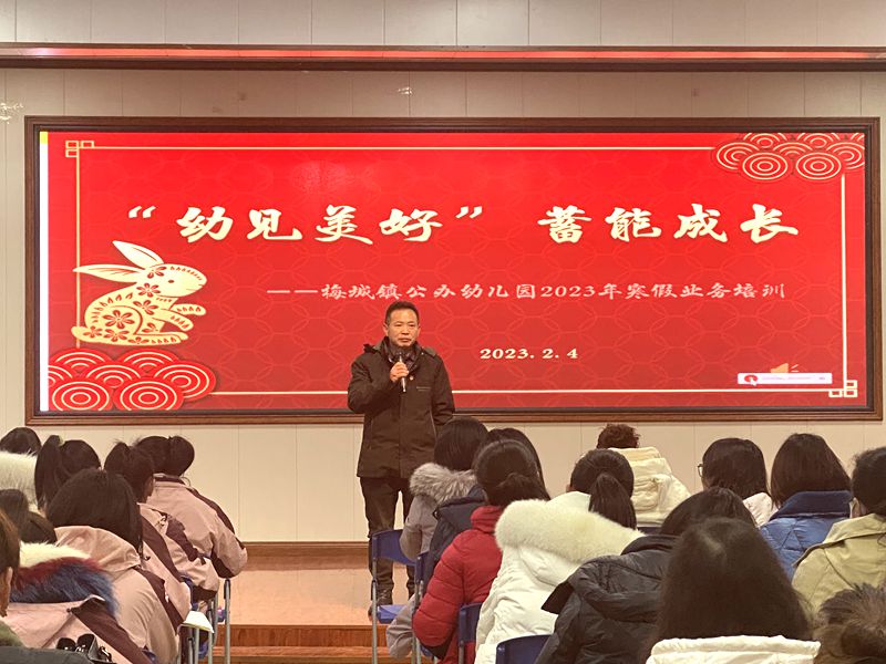 本网讯 新春新气象,携手开新局。2月4日上午,梅城镇中心学校组织全镇公办园教师在梅城镇中心幼儿园四楼多媒体室举行2023年寒假业务培训活动,6所公办园共计90余人参加,中心学校副校长谭良玉出席了本次活动,活动由中心幼儿园保育主任廖亚主持。 活动中,梅城镇望城幼儿园园长贺霞做作了《如何有效开展高质量的园本教研》专题讲座,她从当下老师们在教研活动中遇到的困惑入手,对于研什么、如何研做了具体的阐述,特别强调主持园本教研不应是管理者的专利,每位教师都应积极尝试。 在提倡放手游戏的当下,老师们该如何去观察与记录孩子的游戏,解读孩子的行为,采取适宜的教育,助推孩子的发展,梅城镇中心幼儿园副园长付蓉作了《聚焦观察,走进儿童》自主游戏的观察与记录专题讲座。她从观察视儿童,记录知儿童,解读懂儿童三个点出发,通过具体案例帮助老师们理清了思路。 礼由心生,仪由外表,作为一名幼儿园教师应该具备怎样的礼仪,梅城镇中心幼儿园保教干事刘红芳作了《幼儿园教师礼仪》专题讲座,在每位老师心中对学礼、知礼、懂礼、用礼有了更深刻的认识。 梅城镇中心幼儿园保教主任曹仲英作了《幼儿行为管理的方法与策略》专题讲座,她通过分析幼儿行为发展的特点、幼儿应该形成的行为习惯,通过6个可行性的办法来正确指导与管束幼儿的行为。 天虽尚寒,心已向暖,新的学期,新的起点。梅城镇公办园全体幼师将以崭新的姿态,更加饱满的热情,全力迎接新学期的到来,开拓进取、齐心协力、不负韶华,奋力谱写梅城幼教发展新篇章。