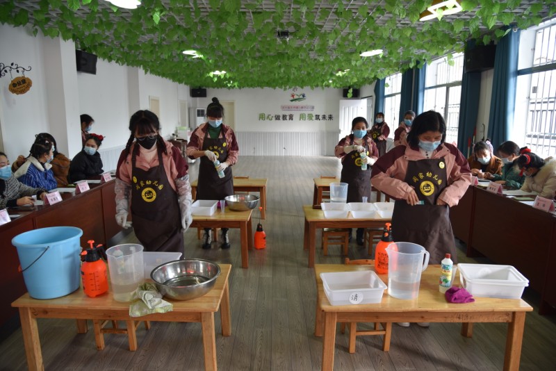 本网讯 12月14日,东坪镇闵家幼儿园开展了保育员技能比赛。 本次比赛共有9名保育老师参加,比赛分为三项技能,一是扎头发技能比拼,梳头发是每一位保育员必须学会的基本功,她们采用梳、扎、编、盘等方式将原本蓬乱的头发编扎成各种创意十足的造型,这项比赛把保育老师心灵手巧的一面充分展示了出来。二是清洁消毒实操技能比拼,保育老师对桌椅、玩具、地面进行了全面的消毒实操演示。比赛现场忙而不乱,均严格按照程序进行清洁消毒,尤其是消毒液的配比及使用,大家操作规范、动作娴熟,展现出日常卫生消毒工作的常态,也反映出保育老师对消毒操作的熟练掌握。三是个人技能展示,有剪纸、唱歌、跳舞、绘画、水果拼盘、手语舞、讲故事等,展示形式多样,现场气氛虽然紧张,但是井然有序,每位老师都各尽其能,展示自己的风采。 紧张的比赛结束后,该园园长戴欢妮对此次比赛进行总结,肯定了保育老师们精彩的表现和超高水准的业务素养,鼓励她们以此次比赛为契机,不断提升自我,把保育工作做实做细,为孩子们提供一个温馨、舒适、安全的学习生活环境。 本次技能大赛中,保育老师们用扎实的专业素养、娴熟的操作技能和良好的精神面貌向我们展示出了她们平凡工作的不凡之处,同时也在比赛中相互学习,交流经验,推动该园保育工作更上一个新台阶!