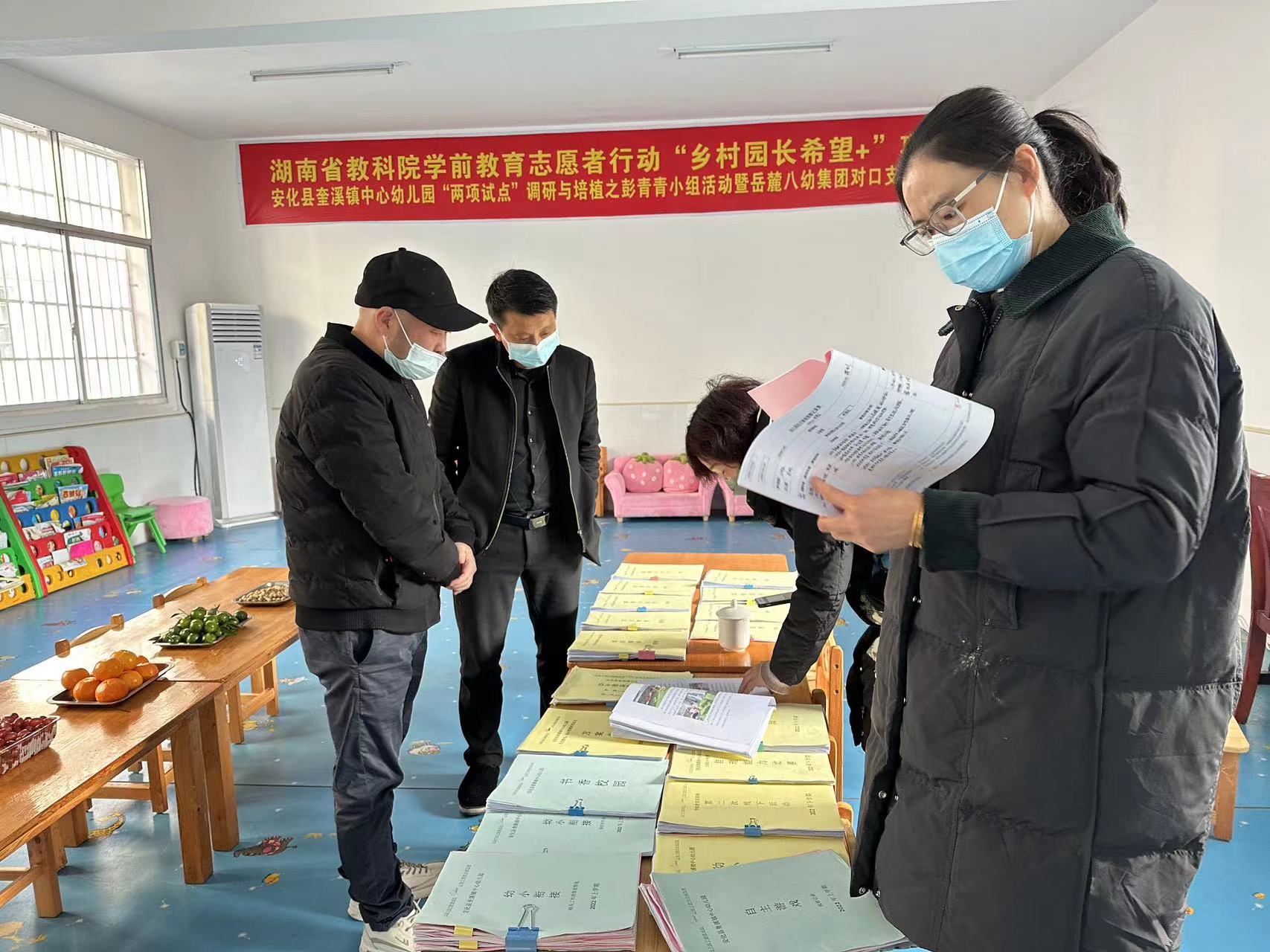 本网讯 12月13日上午,教育局学前教育股副股长蒋芳方等一行3人走进奎溪镇中心幼儿园深入园所现场,查看安全工作、“两项试点”的工作开展情况。