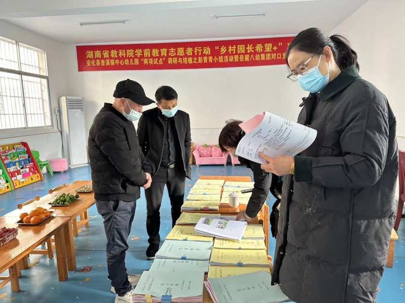 在奎溪镇中心学校校长唐汝党、副校长王珏、园长龚小锋的陪同下,蒋芳方等一行人通过实地查看、查阅资料、听取龚小锋关于开展幼小衔接工作的相关情况。全面细致地对幼儿园两项试点园工作进行检查督导。对该园工作开展给予了充分的肯定。并对该园今后的发展提出了更高的希望和要求。