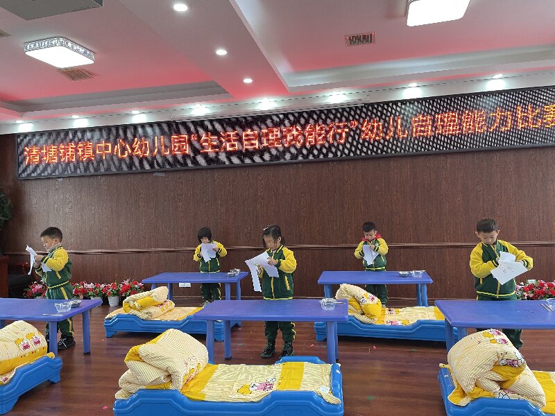 本网讯 12月9日上午,清塘铺镇中心幼儿园举行了“生活自理我能行”幼儿自理能力比赛。
