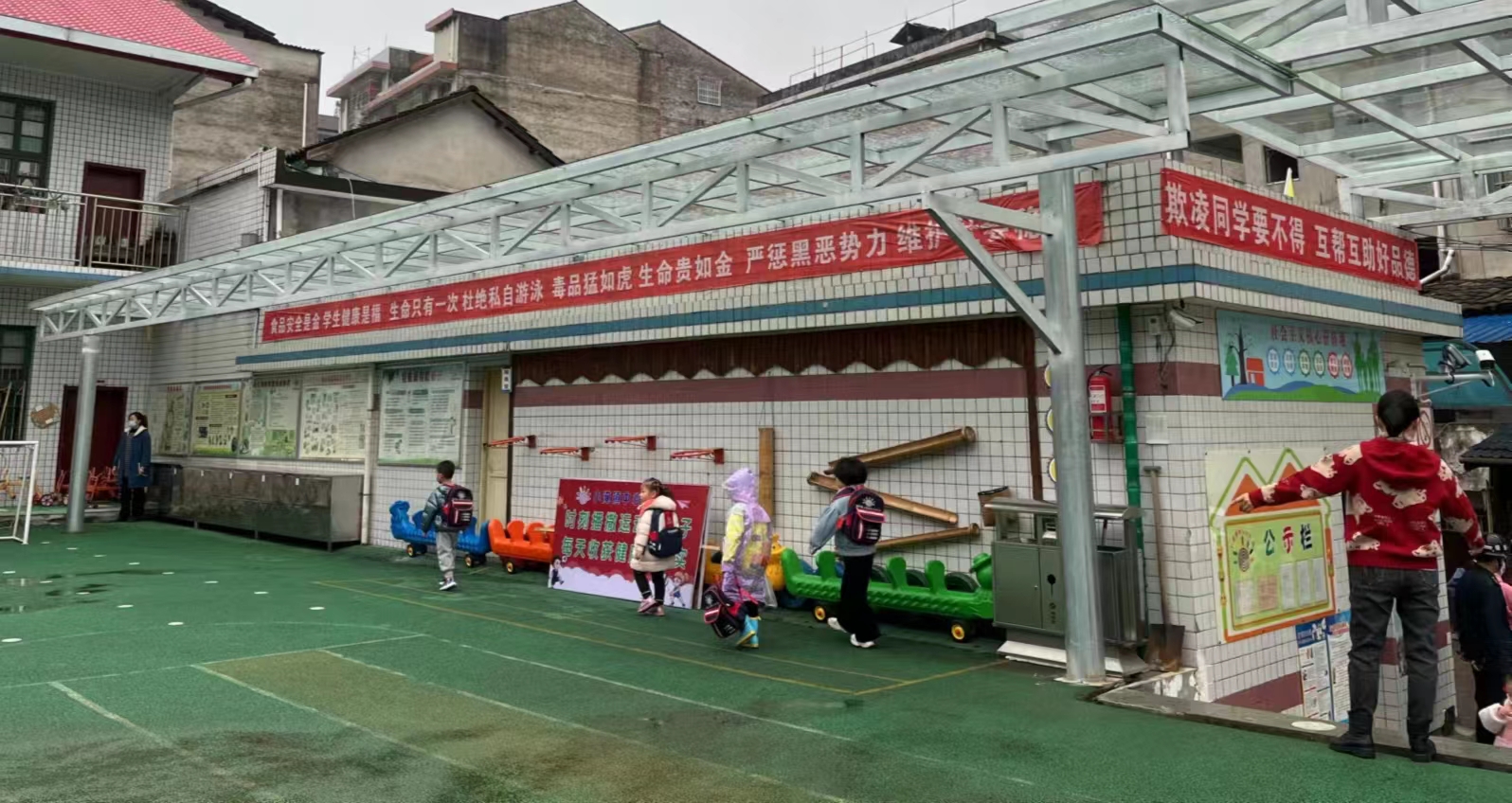 本网讯 11月22日,迎来了入冬以来的第二场大雨,小淹镇中心幼儿园全体教师牵挂着下雨天每一位幼儿入园和离园时的安全。为全力保障在疫情防控期间家长不入园的管理,该园为幼儿设计搭建了长达近40米的阳光玻璃遮雨棚。“阳光玻璃遮雨棚好有爱”“好贴心”“VIP待遇嘛”……面对家长的纷纷点赞,该园园长蒋银燕说:“我们的初衷就是不让孩子们淋雨,让家长们安心。”该园的暖心护学行动,体现出用心守护孩子安全进班、离园的每一个细节。(通讯员:肖娜妮)