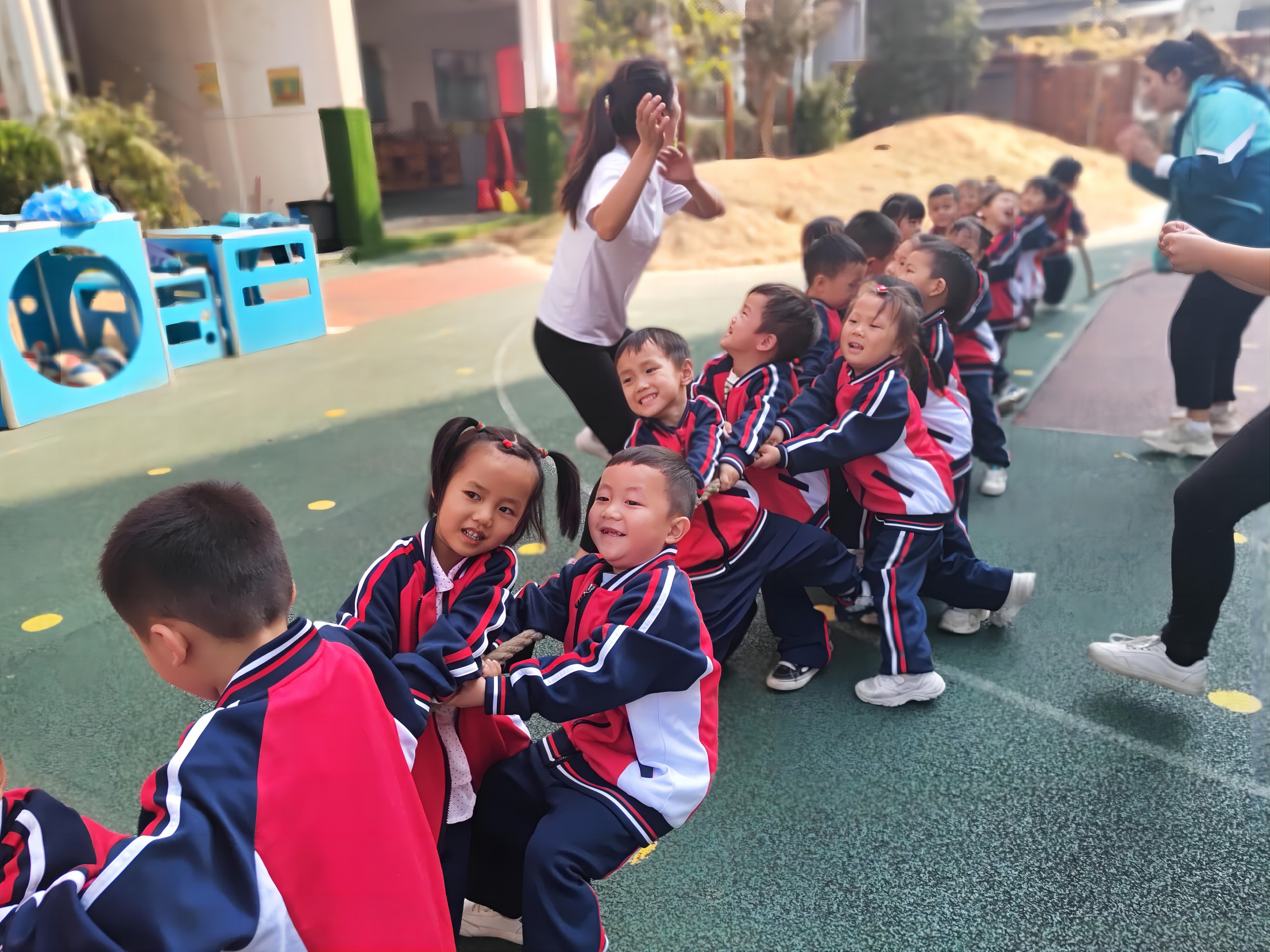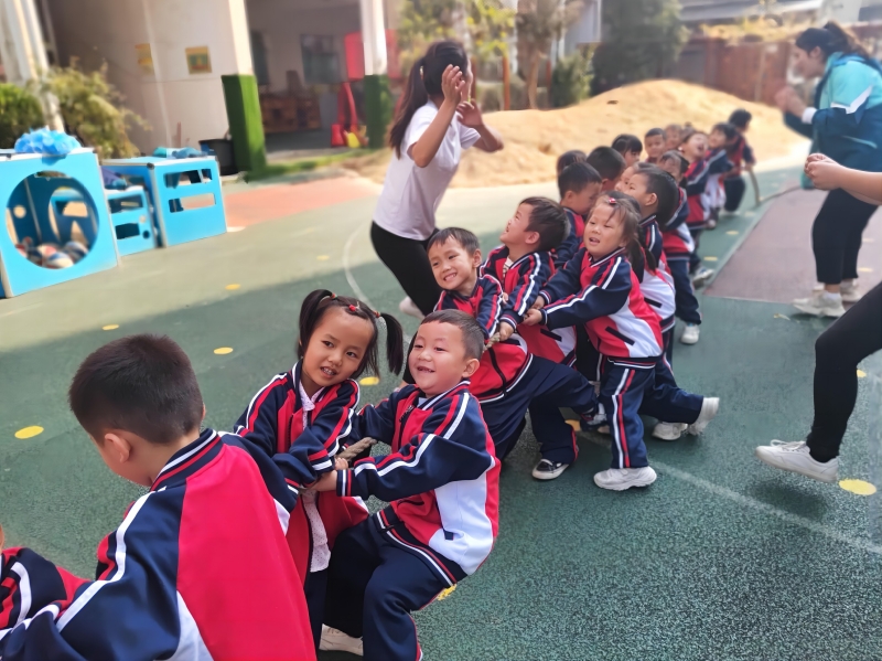 本网讯 踏着冬日的气息,伴着和煦的阳光,11月11日上午,东坪镇智多星幼儿园“乐享运动,不负冬时”冬季运动会拉开帷幕。 上午9:18分,在铿锵有力的《运动员进行曲》中,各班幼儿在教师的带领下排着整齐的队伍,喊着具有各班特色的口号以雄赳赳、气昂昂的姿态进入运动场,该园园长罗剑勇寄语,希望孩子们运动,健康,快乐,老师们热情洋溢的球操、幼儿整齐划一的旗操,更是掀起了一股运动浪潮。 随着哨声响起,拔河比赛开始啦!别看幼儿园的小朋友年龄小,但爆发出了前所未有的力量,鼓掌声、呐喊声、欢呼声此起彼伏,每个人都充分享受着拔河比赛带来的兴奋及快乐,充分展现了他们积极向上、团结奋进的精神风貌。 本次运动会开幕式,大家的热情点燃了这个温暖的冬日,一张张幸福的笑脸定格成冬日里最美的一道风景线。
