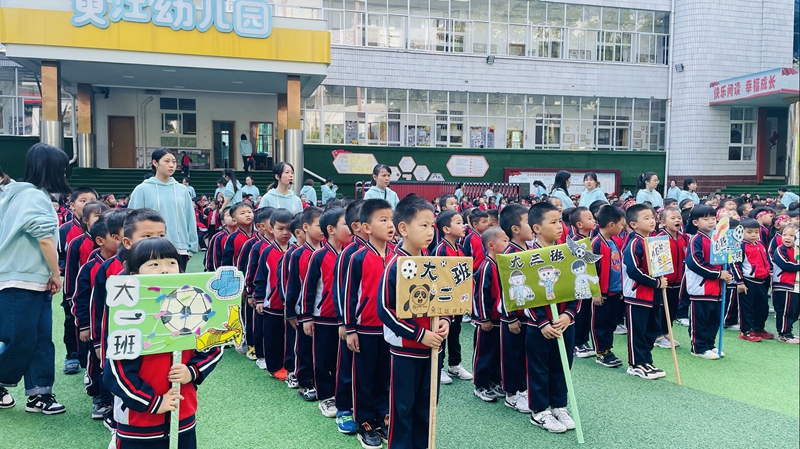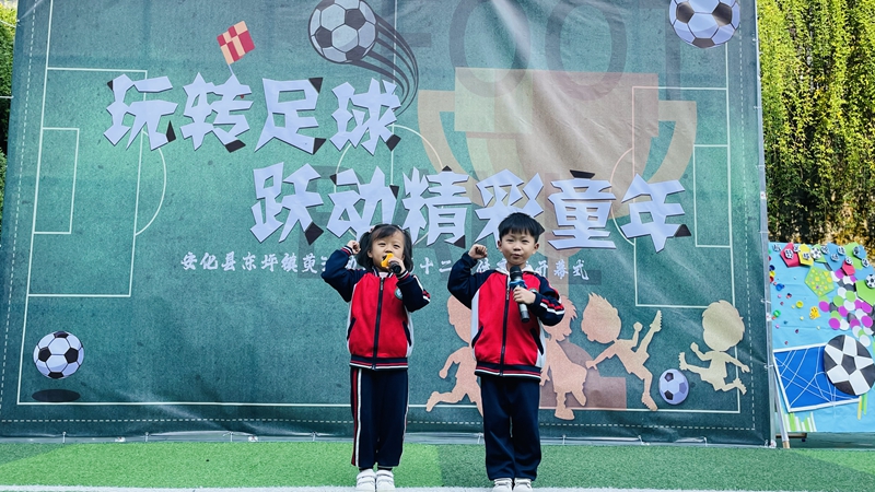 本网讯 运动使人健康,游戏使人快乐!11月10日上午,东坪镇萸江幼儿园开展了“玩转足球,悦动精彩童年”第十二届体育节开幕式,希望大家喜欢足球、热爱足球,在足球运动中锻炼身体,在游戏中收获快乐。 在足球老师勺子的带领下,萸江幼儿园全体师生一起加入快乐的热身运动,开启了东坪镇萸江幼儿园第十二届体育节开幕式。主持人丹丹老师与小卫老师带领运动员代表王瀚林、张书泽小朋友进行宣誓,园长颜群芳致体育节开幕词并随着一声哨响颜园长为本次体育节踢出了第一脚球,为接下来的比赛开了一个好头。也象征着此次体育节正式的拉开帷幕。期待小朋友们能在接下来的足球联赛中带来一场场足球视觉盛宴,为运动赋予更加深刻的内涵和意义。