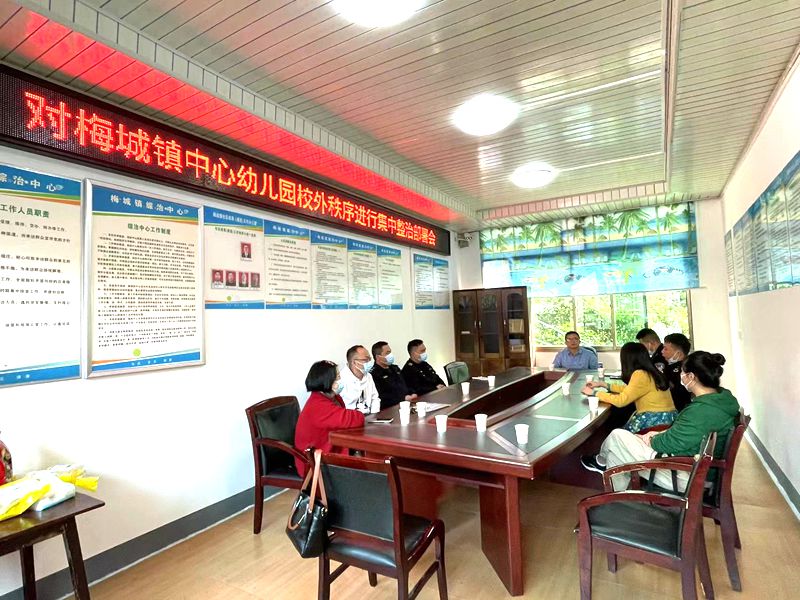 本网讯 11月2日至3日,梅城镇中心幼儿园联合梅城镇政府、派出所、城管执法队等各职能部门对园外秩序进行了集中整治,并初具成效。 据悉,针对园外秩序问题梅城镇政府人大主席夏剑勇召集各部门代表在政府二楼办公室开展了集中整治部署会。梅城中心幼儿园园长晏丽妆介绍了该园入园离园时园门口通道狭窄、周边住户停放的小汽车多、家长接送摩托车、三轮车较多、流动摊点多等造成的安全隐患,并提出了自己的想法与建议。会后,各代表到实地进行了查看,针对现场相关问题在该园四楼保教处进行了再次商讨,形成了最终整治方案。 经各部门积极配合迅速行动,该园园外秩序得到了一定的改善。“太幸福了,这条路终于不堵了!”“现在孩子入离园安全多了”家长们纷纷感言到。晏丽妆表示,将继续努力营造安全、文明、有序的园外环境,提高全园师生及家长的安全感和幸福感。