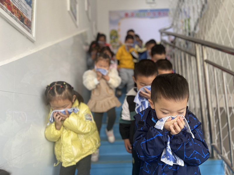 本网讯 10月13日,冷市镇中心幼儿园进行消防疏散演练活动。 消防演练前,各班教师根据幼儿的年龄特点,进消防安全教育,让幼儿学习到遇到火灾时要做的一些措施。 上午10点26分,随着急促的警报声响起,拉开了消防安全演练的序幕。各班教师师本着“安全第一”的原则,有序的组织幼儿快速疏散到集中点操场。全体幼儿捂住嘴鼻、低头弯腰,不惊慌、听指挥、动作敏捷、不推挤、无冲撞的安全逃出,整个安全演练仅用时3分02秒。到达安全地带后,各班级教师迅速清点人数向总指挥贺莹汇报。随后,向幼儿及教师演示了灭火器的正确使用方式:“一看,二摇,三拔,四喷” 总指挥对本次活动进行总结,针对本次演练过程中出现的问题,提出整改方案,确保本次消防安全演练落到实处,起到实效。 通过演练活动,全体师生了解逃生常识和熟悉疏散路线,提高了教职工在针对突发火灾时应有的沉着冷静的心理素质。提高幼儿应对危险的能力和有紧急感,培养了幼儿自我保护的意识。