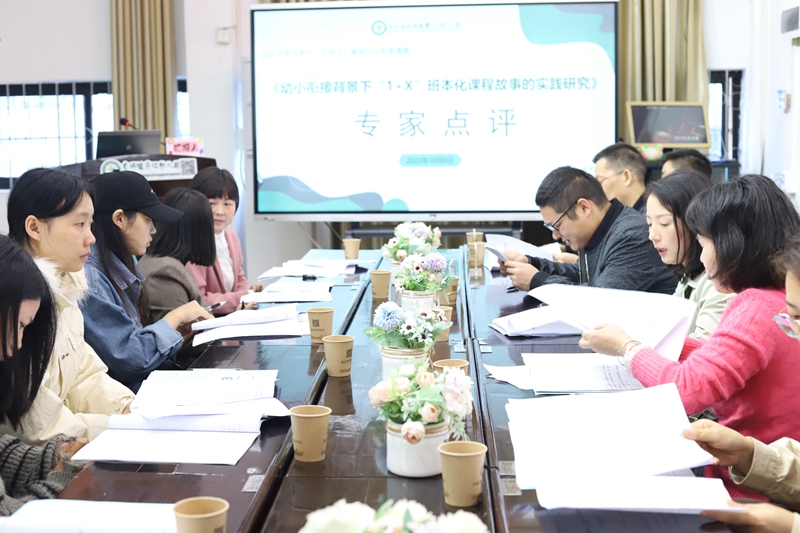 本网讯 10月8日上午,萸江幼儿园举行了市级“十四五”规划2022年度课题<幼小衔接背景下1+X班本化课程故事的实践研究>开题论证会。本次会议邀请了安化县教师发展中心副主任陈高峰、教研员邓健、刘波及该园课题组成员等14人参加。 副园长温洁代表幼儿园课题组进行了开题报告。具体分析了该园开展本课题研究的优势及突破。阐明了开展课题研究的目的和意义。各位专家分别对课题进行了论证。三位专家有温度、有高度、有深度的精彩点评,让课题组老师受益匪浅,对课题的研究有了更深层次的认识。该园一定认真吸取专家的指导意见,修改完善开题报告和实施方案,优化课题研究实施策略,充分发挥“课题研究”的力量,努力积淀、形成高质量的研究成果。 据悉,该园从“十三五”到“十四五”,坚定不移地探索着科教兴研,科研助教、科研兴园之路。