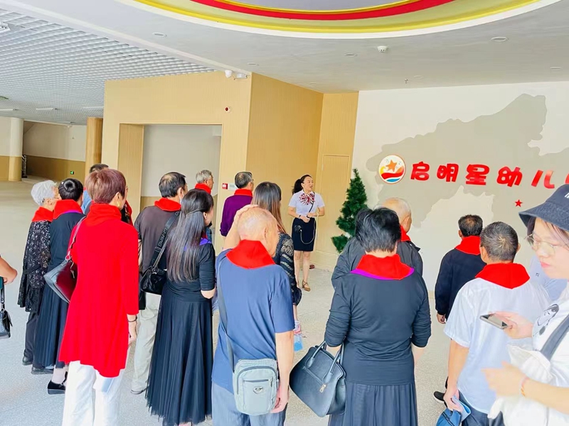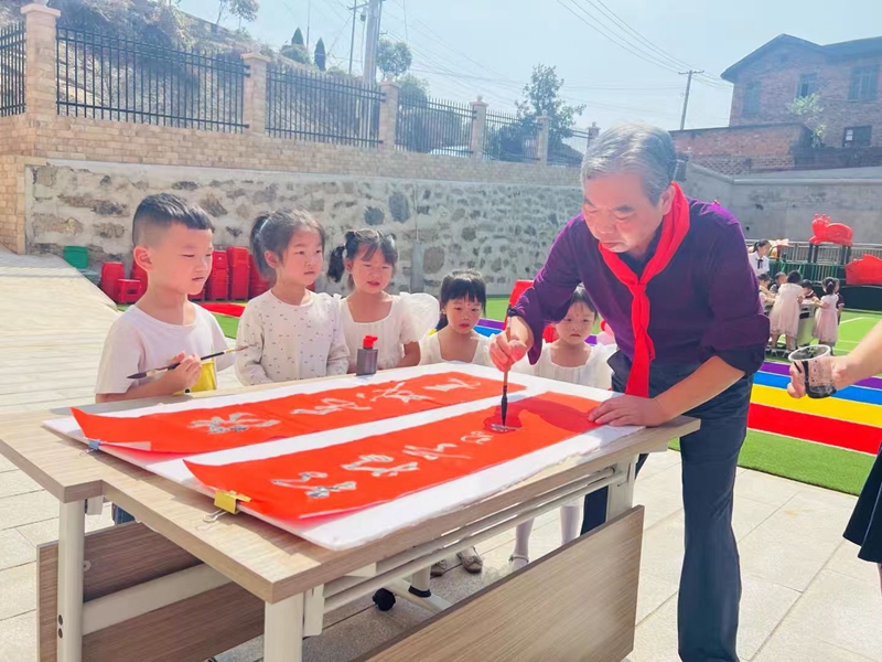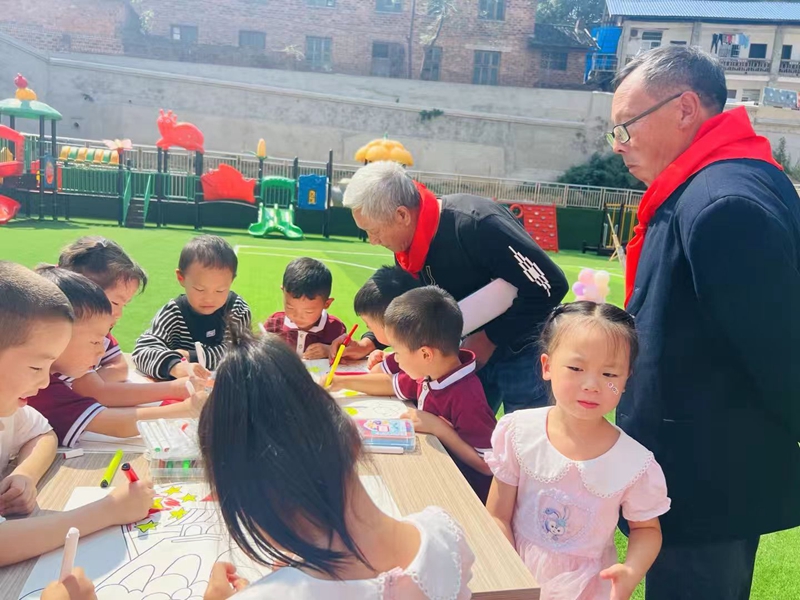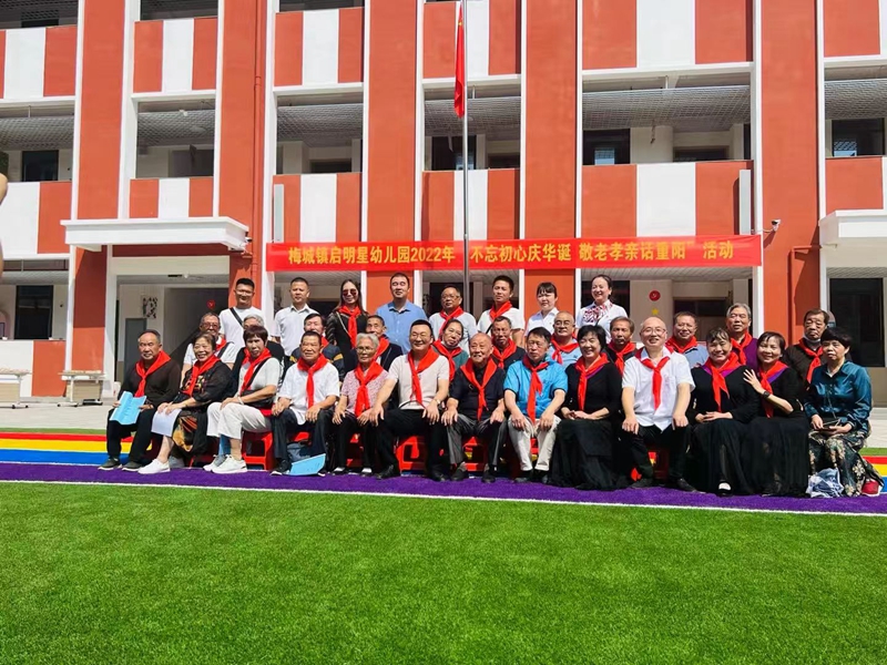 本网讯 9月29日,梅城启明星幼儿园开展了“不忘初心庆华诞 敬老孝亲话重阳”双节主题活动,此次活动邀请了30多名退休教师参加。 活动伊始,该园园长张小叶详细地介绍了该园的办园理念、宗旨及今后的发展规划。在孩子们的热情邀请下,退休教师与孩子们投入到了游戏环节,每个游戏环节既简单,又富有趣味性,深受老年人的喜爱。 “百善孝为先”。此次活动不仅让幼儿感受到中华传统美德的魅力,更让孩子们学会去爱身边的每一个人,在生活中自然地走进感情的世界,体验幸福生活的喜悦。常怀饮水思源之心,常怀敬老爱老之情,愿尊老爱老的中华美德在孩子们的传承下,不断地发扬光大!