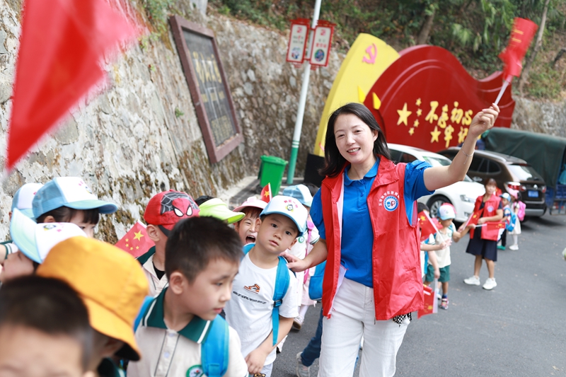 到达目的地后小朋友们与老师一起玩游戏、一起寻找秋天感受秋天的气息,还能一起倾听园长妈妈和党员家长们讲解红色革命史,亲身体验党的光辉历程,从而理解我们幸福的生活全靠革命先辈们用生命和鲜血努力争取而来,知道来之不易的生活我们要格外珍惜。
