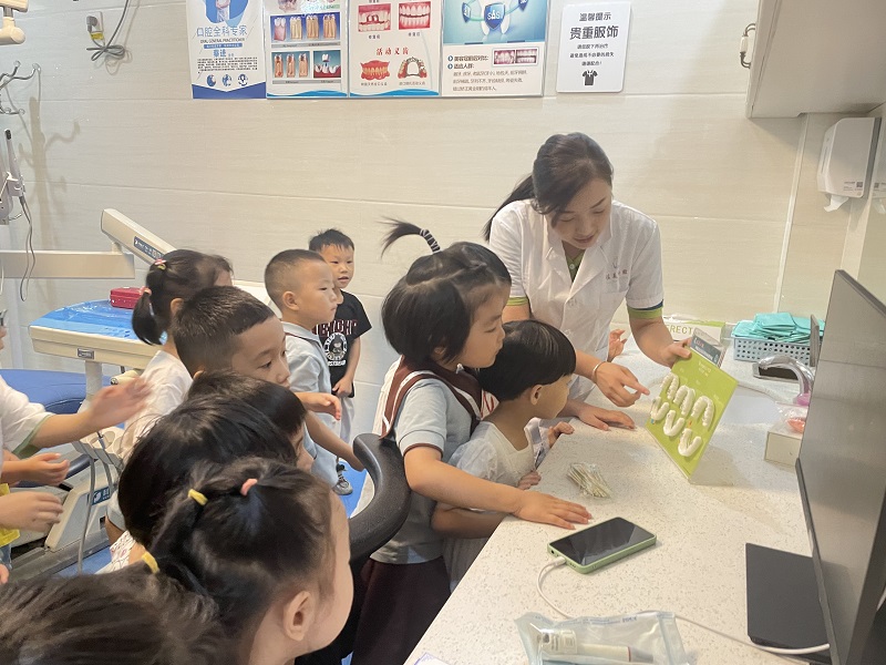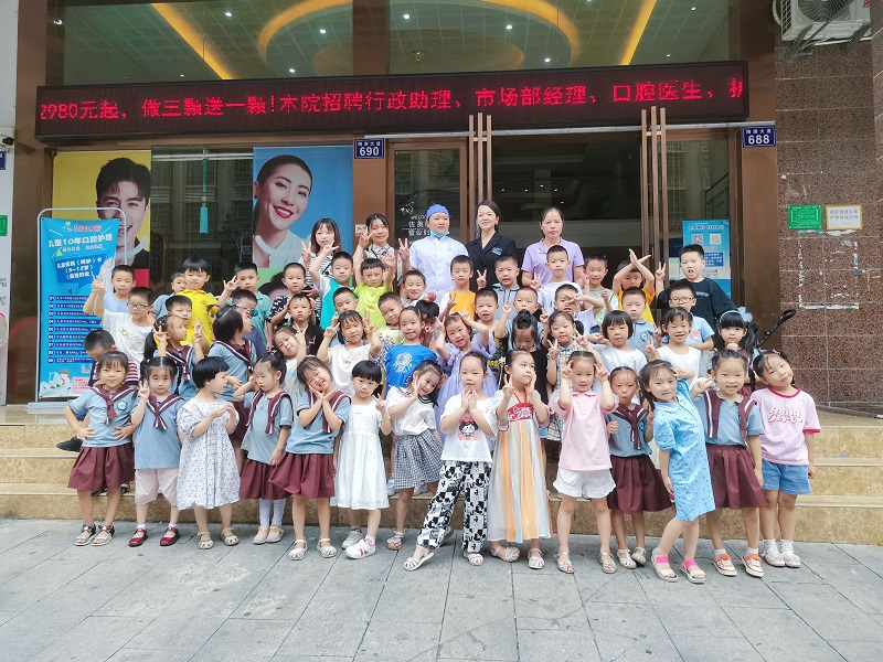 本网讯 9月20日是全国第34个爱牙日。上午,安化县中心幼儿园2003班、2004班全体师幼开展了社区活动《走进佐美口腔诊所》。 牙科诊所宽敞干净的环境、医生亲切的笑容、轻松愉悦的气氛,一下拉近了孩子们和诊所的距离。孩子们依次排队,在牙科医生的带领下,了解了牙医的工作流程,参观了神秘的牙科诊室,认识了基本的牙科设备。医生详细地给每个孩子进行了检查,做好了详细的记录,还对个别患有蛀齿的孩子提出了护理建议。 这次参观牙科的实践活动,孩子们更加清晰地了解了牙医的这个职业,在真实的体验中认识了自己的牙齿。医生的温柔和耐心,消除了孩子们对于医生的恐惧感,认识到牙齿健康对于生活的重要性。让孩子们从被动到主动,养成爱护牙齿的好习惯,不再惧怕看牙,保护牙齿,从小做起。 据悉,该园每月积极开展社区活动两次,充分开发和利用社区资源,拓展了幼儿园的课程,为幼儿的发展创造良好的条件。