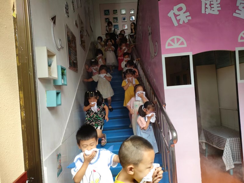 本网讯 9月16日上午9:40,东坪镇闵家幼儿园全体师幼开展了消防应急逃生演练活动。 在没有提前告知具体演练时间的情况下,正在组织活动的老师,看见烟雾后,迅速引导幼儿拿起湿毛巾,捂住口鼻,弯腰小步快走,有序下楼,按消防预案疏散路线逃离。途中,孩子们有序快速撤离,情绪稳定。 该园现场指挥人员分工明确、职责到位,每个楼梯口都有安全防护员。幼儿在撤离到指定地点后,教师清点人数,并向总指挥报告人员到位情况,做到不漏一人。 安全专干酉海花进行了消防知识宣讲,告诉全体师幼如何正确进行“逃生”,如何正确使用湿毛巾来保护自己,以及当遇到真正的火灾时如何正确使用身边的救火器械,并带领老师进行了“灭火体验”。 园长戴欢妮对本次活动总结:要求平时多演练、不慌乱,教师要有超强的应变能力,关键时刻要临危不乱、舍己为人才能体现老师们的责任担当和高尚师德!演练后要做好孩子们的安抚工作,也要让孩子们明白危险来临时如何冷静逃生。 演练结束后,各班老师根据本班孩子的年龄特点和本园实际情况,以图片、情景模拟等容易理解的方式对幼儿进行相关的消防安全教育 ,将安全教育渗透在幼儿一日生活中,帮助幼儿掌握基本的自我防护意识和提高幼儿逃生技能。