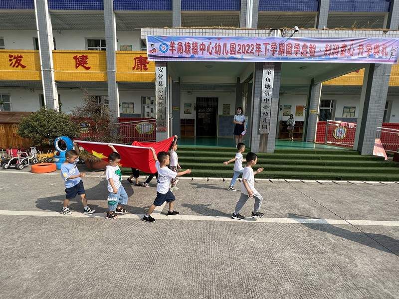 本网讯 9月13日上午,羊角塘镇中心幼儿园举行了“国学启智 利润童心”开学典礼暨新学期第一次升旗仪式。 活动在主持人谌珊妮老师的主持下拉开序幕。伴着激昂有力的出旗曲,大四班的升旗手以饱满的热情庄严着护卫着五星红旗,步履轩昂,大步向前。当雄壮有力的《义勇军进行曲》响彻整个幼儿园,全体师生行注目礼,鲜艳的五星红旗冉冉升起,给孩子们带来了昂扬向上的精神,也点燃了孩子们幼小心灵里的爱国热情。升旗仪式后副园长夏馨馨做了开学致辞,欢迎本学期新入园的宝贝,希望孩子们在以后的学习、游戏中能做到安全、快乐、礼貌、懂事、勤劳。大四班的杨敏老师作为教师代表为孩子们送上了祝福;大一班的王泽文小朋友作为幼儿代表,告诉新入园的弟弟妹妹:老师们会像妈妈一样爱护他们,要慢慢适应幼儿园的新环境,并向小朋友讲述了自己升班的喜悦心情。主持人讲述了本学期该园将着重推崇国学教育,开设国学经典诵读,并和小朋友一起玩了唐诗接龙游戏;开学典礼活动在大四班的舞蹈《春晓》表演中结束。 该园园长贺林表示:开学典礼承载了新的梦想,见证了孩子们的成长,开启了新一学期的希望。该园教职工将不懈努力,让孩子们在羊角塘镇中心园这片生机勃勃的净土上快乐游戏、健康成长。 (通讯员 夏思)