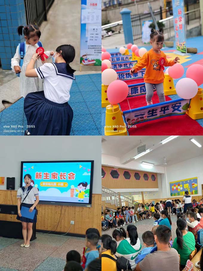 本网讯 2022年9月2日上午八点,梅城镇紫云幼儿园“最美初见,携手明天”新生见面会如期举行。 家长幼儿共一百多人扫码戴口罩进入园所,家长签到-佩戴园花-园所及教师介绍-幼儿自我介绍-美食分享-园所参观-亲子游戏等环节环环相扣,亲子游戏环节更是让整个幼儿园里充满了欢声笑语,相信这次活动对于缓解新生入园焦虑、建立良好家园联系都起到了至关重要的作用。活动后,共收到有效家长问卷调查106份,对于个别幼儿特殊的午睡、饮食习惯如实告知,也对幼儿园的接送和家委会工作提出了许多宝贵的建议。 这是一次“新”与“心”的交流,也是彼此了解和合作的起点,相信未来将与家长们携手同行在高品质的家园共育下,共创孩子们的美好明天!