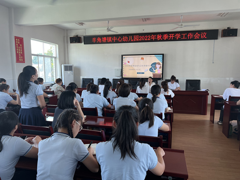 本网讯 近日,安化县羊角塘镇中心幼儿园组织全体教职工召开了2022年秋季“智勇归来 幼见美好”全体教职工会议。 该园教师自觉按照脚下的“一米线”,经过测体温,出示行程码、健康码后有序入园。园所为老师们准备了满满的仪式感,欢迎老师们回归。会上,该园业务园长夏馨馨就新学期工作作了部署,提出了新学期的工作目标和措施,让全体教职工明确了新学期的工作思路。各部门负责人对本学期工作进行了计划和安排,明确了工作目标,和各项主要工作内容,为本学期的稳步推进指明了方向。 该园园长贺林表示,我们将携手奋进,乘势出发,行稳致远,砥砺奋进守教育初心,以昂扬向上的精神面貌和立德树人的扎实行动启新程,喜迎党的二十大胜利召开。