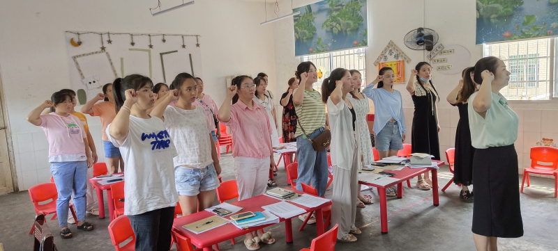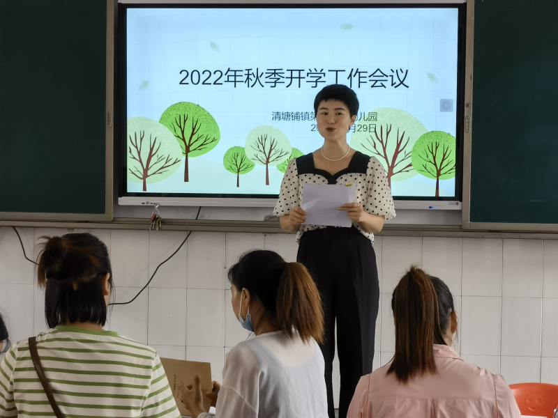 本网讯 8月29日上午,清塘铺镇第一完小幼儿园召开了2022年秋季开学工作会议。 学期伊始,教研先行,业务园长熊敏向大家明确了本学期的保教计划,实施沉浸式教研活动,提高教师的职业技能,扎实做好幼儿园一日常规,在教育教学、教研工作方面,针对课题研究、环境创设、自主游戏、园本课程等工作作出了具体指导和要求,老师在台下认真倾听,记笔记。 紧接着,安全专干严雅妃针对疫情防控、安全工作、卫生保健等工作提出了新要求,确保幼儿在园健康、安全地成长。 最后,园长严艳红对本次会议进行了总结,并对新学期各项工作及疫情防控形势研判做了重要补充,要求各分管领导组织相关人员进行业务培训。会议在老师们的宣誓中结束。 新学期的乐章已经奏响,新学期工作会议的召开,使每一位教职工都明确了工作思路、端正了工作态度。相信在大家的齐心协力下,清塘铺镇第一完小幼儿园这个温暖的大家庭里,孩子们将会更加快乐、健康、活泼的成长。(通讯员 熊敏)