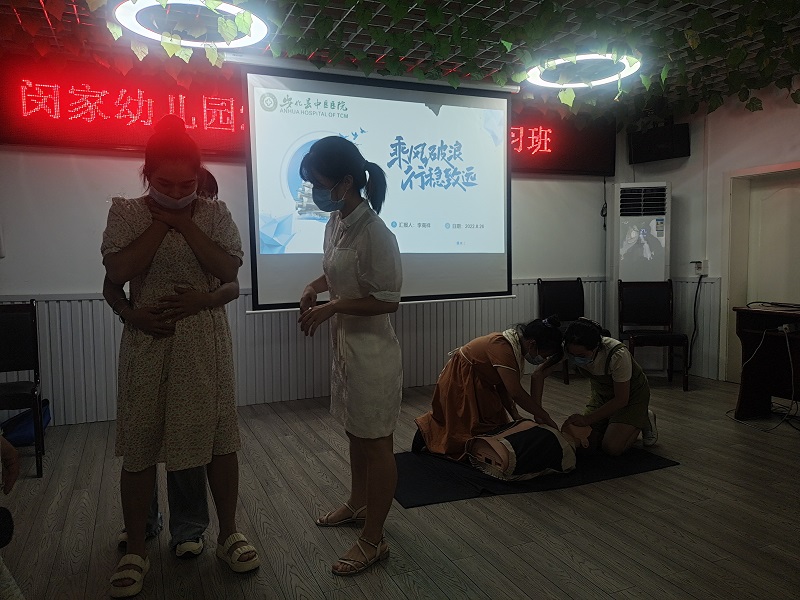 本网讯 8月26日下午,东坪镇闵家幼儿园邀请了安化县中医医院护理部主任李高翔及科室一行四人为该园全体教职工进行了心肺复苏、海姆立克、止血包扎、固定搬运等急救知识专题培训。 培训中,李高翔通过视频,图文的PPT、现场实际操作演示相结合的方式向大家介绍了日常急救知识,深入浅出地阐述了“心肺复苏”和“海姆立克”等急救技术。通过详细讲解,老师们了解了心肺复苏术的操作流程和注意事项。 培训后,该园老师们积极参加实操演练。李高翔手把手指导老师利用人体模型进行模拟实训,她及时纠正大家操作中的错误,指导大家规范操作步骤、力度、频率等。在李高翔的耐心指导和逼真道具的操练下,大家较为深入的掌握了“海姆立克急救法”和心肺复苏要领。 教师们纷纷表示:这次培训不仅掌握了紧急救护的正确方法,还深刻体会到生命的脆弱和提高危险防范意识的重要性。(通讯员:戴欢妮 酉海花 林志群)