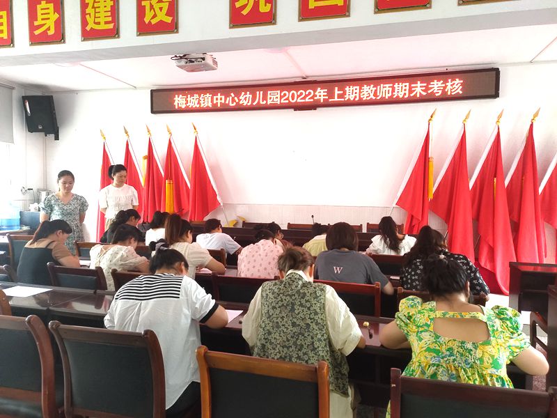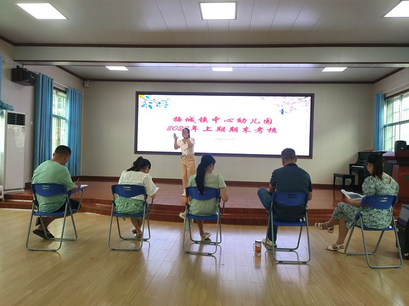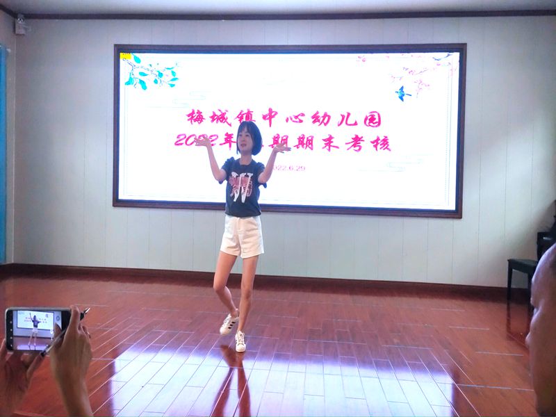 本网讯 6月29日,梅城镇中心幼儿园组织全体主配班教师进行期末专业技能考核活动,全园36名教师分两个组两个时间段进行,考核内容包含绘画、弹唱、舞蹈、故事讲述四个方面。园长晏丽妆、副园长付蓉等行政领导担任评委。