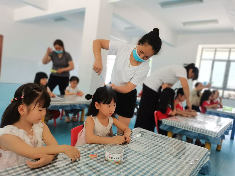 本网讯 6月15日中午,江南镇洞市幼儿园开展了以“千‘辫’万花 ‘梳’你最美”为主题的保育员梳头发技能比赛。 在比赛前,各班保育老师格外重视,积极准备、认真对待。通过自身经验以及网络平台的学习,了解各种梳头发的方法。经过一次次地尝试与练习,她们每人带上2名小模特以及各种扎头发的材料,自信满满地上场。 比赛中,只见她们动作熟练,把最快、最好的水平展现给大家;比赛现场气氛活跃,保育老师们聚精会神梳辫子,麻利地梳、或扎、或盘、或编松散的头发;比赛中时不时还会传来保育老师和小朋友们针对辫子样式轻声细语的交流声:自然、放松的氛围使小模特们心情愉悦地配合着,经保育老师灵巧的手一打理,瞬间变成了美丽的公主辫、韩式蜈蚣辫、时尚松松辫、温暖爱心辫、文艺复古辫……最后评委们从用时、动作熟练、辫子花式、整体效果进行了综合性的评价,分别评出了一等奖、二等奖、三等奖。 保于细,育于心,不负时光不负爱。保育老师都纷纷感慨:对孩子们最大的爱意,就是把平凡的工作做到极致,相信我们的孩子们在我们全心全力和无微不至的照顾下,会像花儿一样绽放各自的精彩。(通讯员 王佩)