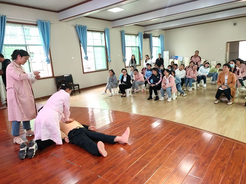 本网讯 5月18日中午,梅城镇中心幼儿园四楼多媒体室传出一阵阵欢声笑语,该园保健医生刘缇君正在一个一个检测老师们心肺复苏实操情况,整个场面轻松、愉悦。 实操前,刘缇君向老师们介绍了意外伤害的三种类型以及窒息、溺水、触电、创伤、鼻出血、误服药、高空坠落、异物这些常见的意外伤害处理方法,重点讲解了海姆立克急救法、心肺复苏的基本步骤以及各环节应重点注意的事项,并进行了操作示范。在老师们进行心肺复苏的操作练习中她反复强调双手交叉重叠、五指翘起、双臂伸直、利用上半身身体的重力,手臂垂直向下按压,掌跟在按压部位不离开胸壁,注意按压深度5-6cm,1分钟要达到100到120次按压。并利用剪刀、石头、布的手法让老师们快速掌握了海姆立克急救法。老师们学得认真,做得规范,人人过关。 晏丽妆说:“老师们多掌握一项技能,孩子们就多一份保障”。在梅城镇中心幼儿园“人人学急救,人人会急救”的良好氛围下,老师们应对幼儿意外伤害事故的处理能力得到了提高,为幼儿有一个安全、健康的成长环境打下坚实的基础。(通讯员 刘红芳)