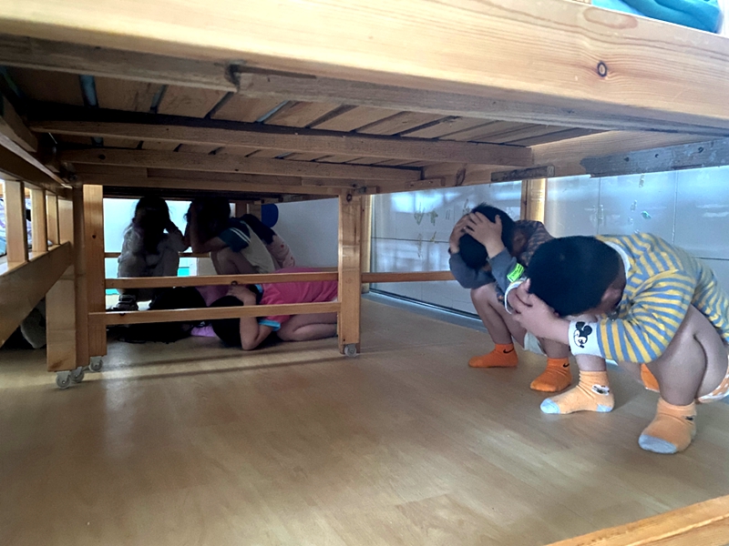 本网讯 5月16日下午14:10分,江南镇中心幼儿园举行了一场别开生面的防震安全演练活动。 孩子们正沉浸在睡梦中,突然听到“地震警报”声响起,各班教师立即告知幼儿“地震来了,不要慌”并指挥幼儿紧急避险(指导幼儿双手护头,蹲在床底下或承重墙角落等)。1分钟后,随着紧急疏散的信号响起,各班教师组织幼儿紧张有序地沿着预定路线到达操场集结区,在操场各班教师紧急集中清点人数向疏散组组长汇报。组长对演练活动进行了详细小结,对整个演练过程做到急而不乱表示肯定,达到了预期的目的。 这次的演练活动,该园师幼更进一步掌握了在发生地震紧急情况下,如何积极应对有效自救的安全知识,同时也使该园全体师幼树立了防震安全意识,做到警钟长鸣。在以后的教学中,该园会进一步将安全教育渗透到一日活动中,常抓不懈。(通讯员 陶柳玉)