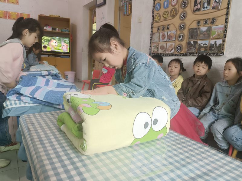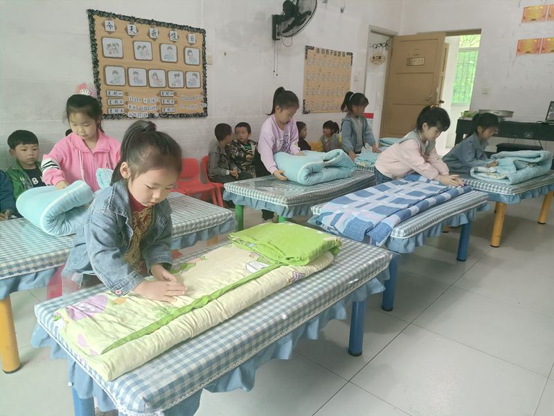 本网讯 5月13日上午,洞市幼儿园大二班开展了一次以“我会整理床铺”为主题的教育活动,让孩子掌握简单的生活技能,提高幼儿的自我管理能力。 教师先介绍了活动规则,并做了示范,孩子们都跃跃欲试。接着就是孩子们分组进行整理,只见孩子们抖动被子,熟练地平铺被子,他们的小手不停地在被子上迅速地移动,展开、铺平,折叠,一折两折三折,动作流畅,一气呵成……瞧!一床床“豆腐块”被子映入眼帘。 自理能力活动的开展,提高了孩子们的动手能力,展示了孩子们灵活又能干的小手,感受到了成功的喜悦,从中培养了幼儿良好的生活自理能力。据悉,大班的老师一直在为做好幼小衔接的工作努力着,注重在一日活动中渗透生活能力、学习能力、良好习惯的养成。(通讯员 黄敏辉)
