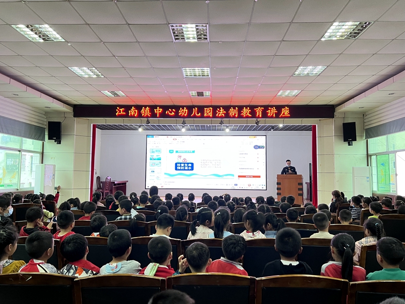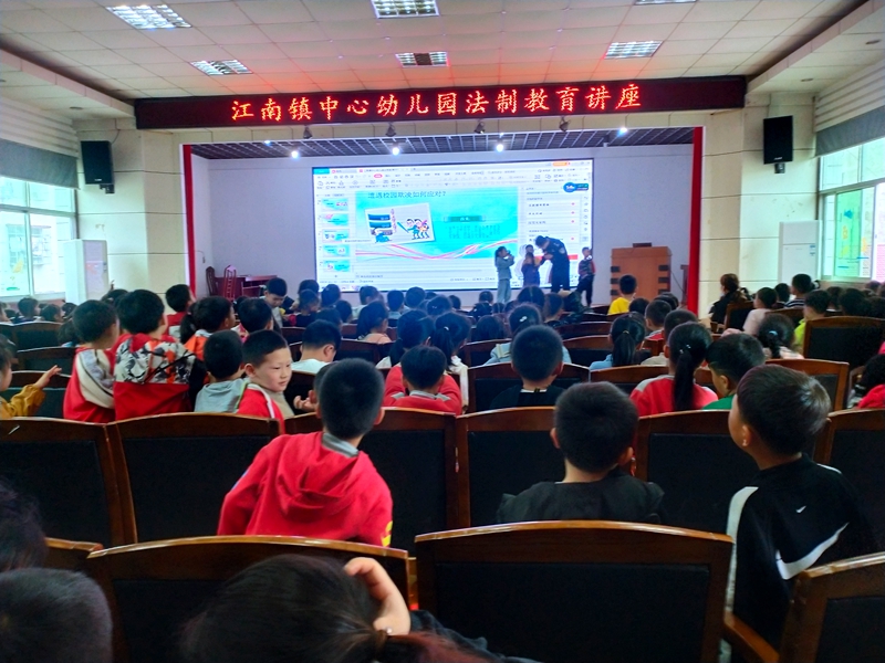 本网讯 5月11下午,江南镇派出所法制副校长张胜为江南镇中心幼儿园师幼进行了一堂生动而又形象的法制教育安全讲座。