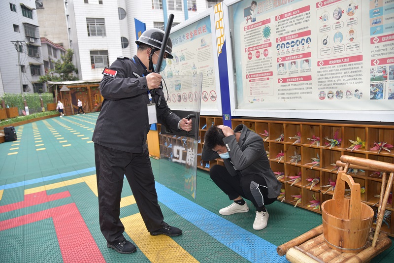 本网讯 5月11日上午东坪镇闵家幼儿园大班组全体师幼开展了反恐防暴演练活动。 演练前,教师组织了反恐防暴安全教育活动,通过故事、情景表演、多媒体动画等形式为孩子们讲解了有关反恐防暴方面的知识,让幼儿掌握基本的自我保护方法。 演练中3名家长假扮的歹徒,持棍欲强行闯入幼儿园,保安迅速启动“一键报警”,第一时间拉响警报,该园应急处置小组成员迅速赶来增援,保育老师、后勤人员手持棍子等物品赶到各个通道口,以防止歹徒进入幼教楼,正在做课间操的班级,教师迅速组织幼儿疏散,躲进就近班级,隐藏并迅速关紧门窗。 演练结束后,在保安谢新盛简要易懂的解说与示范下,师幼逐一认识各类反恐反暴武器,如脚叉、腰叉、防护盾牌、警棒、防刺服等,并了解不同状况下操作的方法和要点。各班教师迅速做好安抚善后工作,稳定幼儿情绪。保健医生巡视处理“受伤”幼儿。 此次活动增强了师幼的反恐防暴意识,提高了门卫、值班人员在反恐防暴等突发事件中的应对能力。(通讯员:戴欢妮 酉海花 林志群)