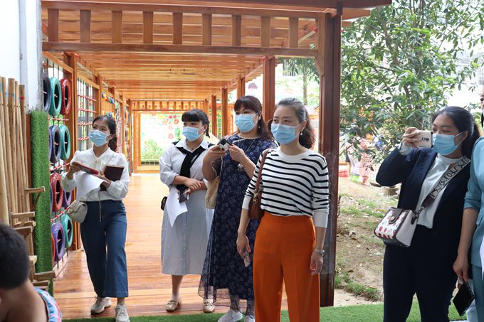 本网讯 5月7日上午,东坪镇智多星幼儿园迎来了梅城镇幼教同仁一行二十余人来园学习、观摩交流。教育局学前教育股副股长蒋方芳、东坪镇中心学校分管学前教育副校长邓东风、东坪镇团支部书记吴慧、东坪镇吴合智多星幼儿园园长罗剑勇全程陪同。 观摩的老师们按照上级防疫要求在扫场所码、查验健康码、行程码、测温与登记等手续后,依次进入园所参观。首先映入眼帘的是野趣、多元、自然的户外环境,伴随着一阵欢快的音乐声响起,孩子们欢呼雀跃地来到属于他们的“小天地”。在解说员谢俊的带领下,大家来到游戏的现场,近距离观看孩子们的游戏。有的驻足于幼儿游戏区,进行细致地观察,有的来回走动,不停地用手机拍照记录,还有的则直接参与到孩子们的游戏当中。游戏场地欢声笑语,场外交流思绪纷飞。 每一次相遇都是一次美好的开始,更是经验和智慧的碰撞。此次观摩交流活动,为园所间、教师间架起互助互动的桥梁,形成共同学习,共同进步的良好氛围。罗剑勇表示会把每一次对外交流作为促进幼儿园发展的新契机,在互通互学中夯实内涵发展。