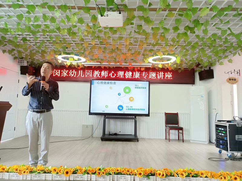 本网讯 4月29日中午东坪镇闵家幼儿园邀请了国家二级心理咨询师喻思堂老师来园做了“健康、快乐、幸福——教师心理健康”的专题培训。该园全体教师共24人参加,讲座持续了近2小时。 讲座中,喻思堂利用课件、心理健康测试题、真实案例剖析等多种形式进行讲座,内容包括:职业与幸福感、消极情绪、如何掌控情绪等。从心理学、教育学的角度,向老师们深入地剖析了“幼儿教师压力产生的原因”“如何消除消极情绪”“如何调整和控制情绪”等普遍存在的问题,告诉老师们如何学会自我调节,释放压力。喻思堂告诉大家:要发现热情,在工作中寻找乐趣、用积极的心态去面对工作和生活,让幸福感建立。 教师们认真聆听,感受颇深。本次讲座不仅提升了教师们自我情绪的管理能力,而且使大家学会在日常工作和生活中积极主导情绪,调适不良情绪,保持良好的心态,树立职业幸福感,用积极正面的情绪快乐工作,做一个健康快乐的教育者。(通讯员:戴欢妮 酉海花 林志群)