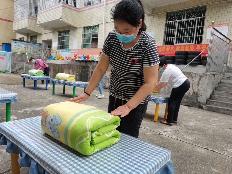 本网讯 4月27日中午,洞市幼儿园进行了一场别开生面的“有‘被’而来 ‘叠’出精彩”为主题的保育教师叠被子大赛活动。 叠被子比赛在该园保教主任王佩的号令下,正式拉开了帷幕!在优美的音乐声中,保育老师们各个动作娴熟、迅速,使出浑身解数各展其能,展、磨、剔、折、捏、修一系列动作之后,一床床整齐放正、棱角分明的“豆腐块”呈现在眼前,赢得了在场师生们一阵阵叫好;叠被子是保育教师最熟悉的工作,体现了幼儿园生活的整齐划一。整场比赛在紧张而又热烈的气氛中顺利完成。 保育教师比赛完成后,评委们从大家的完成时间、美观整齐、质量等方面进行了紧张认真的打分,评选出了三个一等奖,四个二等奖。 本次比赛提高了保育老师的操作技能,增强了他们的服务意识、责任意识和竞争意识,为该园的宝贝们在整洁、舒适的环境中健康成长提供了保障。通过评委点评激励,保育老师在今后的工作中再接再厉,更上一个新的阶梯。(通讯员 王佩)