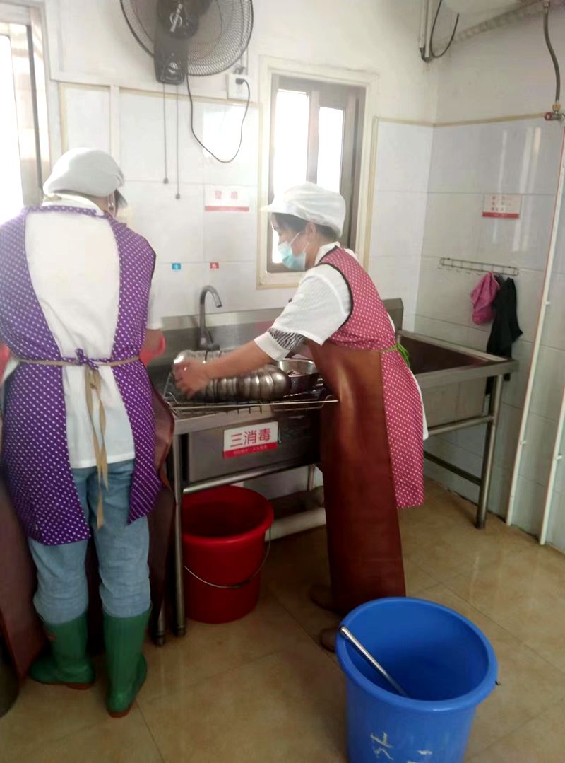 本网讯 总有这样几个身影,他们每天天还没亮就入园。从早上6点忙到下午3点。年复一年日复一日,不计得失,默默工作。她们拿着微薄的工资却每天干着看似简单重复且无法博人眼球的繁重工作。他们就是江南镇中心幼儿园的厨房工作人员黄小利、冯桂花等人。 为传播正能量,在全园形成尊重体力劳动者珍惜劳动成果的良好氛围。在五一国际劳动节来临之际笔者把镜头聚焦到了在幕后默默服务的后勤工作者。现在就跟着笔者的镜头一起来了解一下他们一天的工作日常。感受他们的辛苦与不易。 每天不到六点迎着早晨第一缕阳光他们就早早地来到了幼儿园。入园后第一件事就是四个人相互晨检。测体温、查健康码、更衣。接下来他们辛苦忙碌的工作日常就正式拉开帷幕。 给先天洗好沥干水的碗筷消毒、给十个桶盛满茶水提到备餐间然后精心制作早点盛好后提到备餐间、快速制作清洗加工中餐原料、从仓库将一整袋大米出库蒸饭、清洗幼儿早餐碗筷并消毒、尔后立马进入炒菜环节、三十桶菜十桶饭盛满放上推车。等幼儿吃完中餐又是洗碗并将锅碗瓢盆刀刀板等厨房具消毒。最后环节是厨房大型餐具及地面等的彻底清洁消毒。忙完这一切已是下午2点多。这时的他们个个大汗淋漓疲惫写到了脸上写满了全身。后勤组长黄小利说:其实她们这一天的工作还没有完全结束。因担心早晨烧的茶水太烫,她每天晚上还得抽时间来提前将茶水烧开保温。如果早餐吃包子馒头也得先天晚上来发面。 他们的工作看上去好像只是简单繁琐,其实工作的辛酸只有他们自己知道。 据悉,园所为了让整个厨房工作流程有条不紊,培养他们法律意识纪律意识安全意识团队意识服务意识。确保食品卫生安全做到万无一失。还会每个月组织他们参加一到两次食品卫生等安全法律法规和职业道德及技能的培训学习。我们所看到的娴熟的手法忙而不乱场景其实也是他们台上一分钟台下十年功的努力与服出。 当问及他们累不累值不值时,冯桂花的回答给了我们最满意的答案:说不累是假的,但只要看到幼儿每天吃得开心家长把孩子送到我们江幼觉得放心,领导们对我们关心我们也就觉得这一切值得。说完脸上露出了幸福的笑容。多么淳朴善良的劳动者!是你们的努力换来了江幼市级示范安全食堂的荣誉称号;是你们的汗水换来了江幼各类各级检查中的一致好评;是你们的爱心换来江幼孩子们的健康成长。江幼感谢你们!向你们致敬!向全体教职员工致敬!(通讯员 刘爱华)