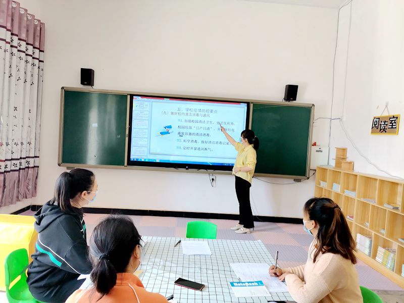 本网讯 4月21日上午,滔溪镇上马幼儿园开展了全园性师幼疫情防控知识培训。各班教师从科学佩戴口罩、勤洗手、保持一米线、少出门等方面教育幼儿要科学防疫,懂得自我保护。10:15,该园园长谢莹蓉分批对全园教职工进行了防疫培训,培训中,谢莹蓉重点强调“一日三检”要落实到位;消毒、通风工作要常态化,做到无死角;对因病缺勤幼儿要跟踪记录时刻关心等。