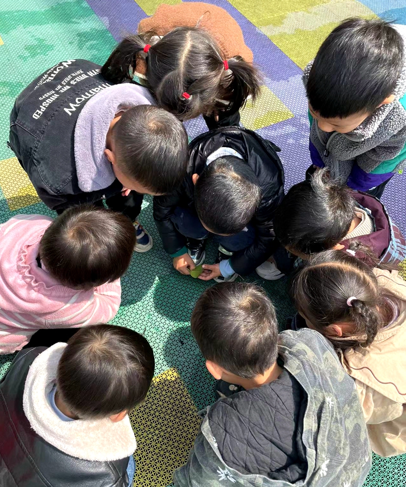 本网讯 4月19日上午,梅城镇未来星幼儿园操场上演着一场由两只虫子引发的激烈讨论。一个小男孩在户外活动时发现了两只奇怪的小虫子,过了一会儿,很多小朋友都被吸引过去了,一下子把小虫子团团包围了。有的小朋友说:像蚂蚁?有的小朋友说:它怎么不回家,是不是迷路了?有的小朋友说:它是不是饿了,没力气?有的小朋友说:它有翅膀怎么不飞,是不是受伤了?有的小朋友给它喂树叶吃,有的小朋友给它遮太阳,有的拿小棍子逗它玩...... 孩子们的讨论越来越激烈,一言一语地交流着,老师抓住孩子们的好奇心,一堂生动有趣的社会探索活动开始了,老师带领孩子们从不同角度仔细观察讨论,认识了常见的昆虫,知道了昆虫的本领,了解了昆虫的生长环境,让孩子们用一颗真挚的童心,去关注,探索昆虫的更多奥秘。 大自然的魅力是无穷的,不只是昆虫,大自然还有好多美丽而神奇的地方,希望孩子们对大自然一直保有一颗探索的好奇心,也希望你们探索的道路是无止境的,让我们带上好奇心,一直走在探索的道路吧……