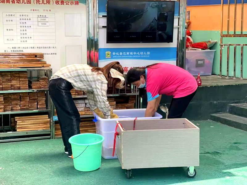 本网讯 中午1点多,本应是师幼午休的时间。可走近江南镇中心幼儿园随处可见的是这样一些身影:操场上是冒着炎热的太阳在31摄氏度的高温下忙着为幼儿室外玩具消毒的李娟、江华英等老师,她们认真对室外玩具进行清洗消毒和整理,用自己的汗水和挤出的时间为孩子的安全护航。走进大厅听到了讨论的声音,原来是大班组长谢庆正组织大班主班老师在进行集体备课。谢庆老师说幼教的特殊性决定了她们只能利用午休时间开展教研活动、进行集体备课。来到幼儿睡房看到的是认真守睡,眼睛始终在几十个床位转悠的老师,这个点尽管老师自己也有了睡意,但为了孩子们的安全,守睡的老师们丝毫也不敢懈怠。 据该园副园长李锦超说:这种身影在江幼每一天的中午都可以捕捉到。只想道一句"老师们辛苦了!此时你们最美,向你们致敬"。(通讯员 刘爱华)