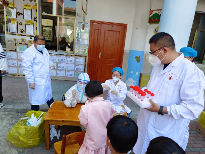本网讯 幼儿:“老师,幼儿园里面怎么来了这么多白衣天使?是要给我们打针吗?”老师:“不是的,因为现在新冠病毒这个‘大怪兽’又开始大面积出现了,为了防止这个‘大怪兽’潜伏在我们的身边,白衣天使们要用棉签从我们的嘴巴里取一点东西,去检测。小朋友们不用害怕,只要张大嘴巴好好配合我们的医生叔叔和阿姨,一会就好了……”孩子们的“十万个为什么”和老师们的耐心解释围绕在长塘镇中心幼儿园4月7日上午的操场。 在全园核酸检测过程中,各班教师全程陪同,引导孩子保持一米距离,协助检测人员核对检测名单及编码,不漏一人,不错一人。采样采取10名幼儿为一组,按照班级的顺序进行检测。 本次核算检测对幼儿和教职工进行精确排查,为幼儿园全体师生的身体健康筑就一道坚不可摧、牢不可破的防线,为幼儿园的正常的教学秩序提供了保障,我们也将继续坚持约束自我,做好防护,打赢疫情防控攻坚战。(通讯员 胡辉) |