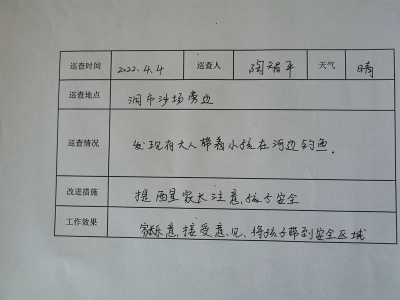 本网讯 “这里河水很深,请您看管好孩子注意安全。”“小朋友,不要独自一人在河边玩耍,危险!。”近日,洞市幼儿园组织教师开展了巡河工作,严防溺水事故的发生。 据悉,该园教师利用周末或放学后分组、分批次、分河段巡视河、塘、沟、渠等水域,劝阻学生远离危险,以确保涉水、溺水事故为零。巡逻人员在巡逻中还不断加强宣传,深入村中发动家长群众加强对儿童、学生的关爱和安全监管,有效制止孩子们到危险地段玩耍和严防学生下河洗澡,并对巡河情况进行台账的登记。 教师巡河为全园幼儿防溺水安全筑起了又一道安全屏障。旨在强化安全教育和管理,让教师深刻认识到“安全无小事,责任大于天”,进一步提高全体师幼珍爱生命的安全意识。(通讯员 黄敏辉)