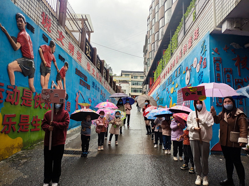 本网讯 3月31日上午,闵家幼儿园全体班主任就位,正式开始疫情防控期间错峰上下学演练。 基于现在疫情防控严峻性,该园在上下学接送进行了调整。幼儿入园家长一律不得进入校园,幼儿和家长全程佩戴口罩,在指定区域排队等候,幼儿先到红外线测温仪下进行测温,确认体温正常后班主任发放接送卡,幼儿交由值班行政引导进园后家长即可离去。幼儿进园后走廊、楼梯处的安全,特设置6个安全站点,由对应班级的教师负责维护定点楼梯周围秩序和保证幼儿安全。离园时幼儿分时段、分班级错峰离园,家长在大门外保持一米间距有序排队等候,值班行政和保安人员提前在园大门口维持秩序。三位老师共同护送幼儿到达指定区域间隔排队,等待家长接领,家长一律不得入园,由班级教师将幼儿交至家长手中,确保幼儿离园安全。(通讯员:戴欢妮 酉海花 林志群)