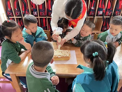 本网讯 闵家幼儿园于3月9日至今开展了“妈妈进课堂”活动,为该园生活课程资源提供了多样化途径。家长们卧虎藏龙,多才多艺,有的是隐藏的手艺人,有的是生活小达人,有的是各行各业的精英……她们为孩子们带来了生动又有趣的活动,也让孩子们认识到妈妈们不同的一面。 3月18日,大一班邓语宁小朋友的妈妈测三码、量体温、实名登记并佩戴好口罩,做好一切防护措施后走进班级,用精致的PPT课件,将蛋糕的制作流程美妙地展现给老师和孩子们,给小朋友带来了一堂“美味”的烘焙课。活动中,语宁妈妈用轻松、幽默的授课方式,把知识和方法传递给孩子们,与小朋友和老师们一起共度愉快地烘焙时光。打开制作好的草莓蛋糕,大家都禁不住流下口水……每人一块尝尝先!有的孩子被邀请到了讲台上,拿起模具做一个属于自己的甜品,散出浓浓的香味,幸福的滋味也充盈着整间教室,孩子们的心中充满了感恩和快乐,纷纷夸赞这位美丽的妈妈,并表达了自己的谢意。孩子们通过这次活动,了解了制作蛋糕的整个制作过程,在快乐的氛围中,让孩子们的动手、动脑、创新、合作等能力得到提高,带领孩子感受到不一样的学习形式。 家长助教活动,使家长们深入了解了幼儿园一日生活的组织与实施,妈妈们的参与带来了丰富的教育资源,孩子们开拓了视野,了解不同职业、不同领域的知识。“妈妈进课堂”,促进家园默契,真正实现了家庭与幼儿园之间的互动和教育价值的最大化。(通讯员 戴欢妮 林志群 酉海花)
