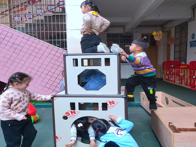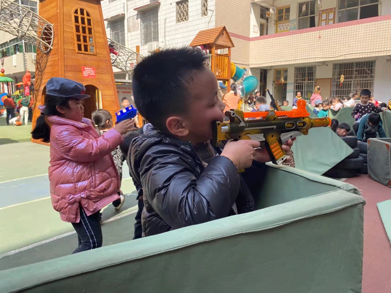 本网讯 “嘣嘣嘣!嘣嘣嘣!”3月10日下午3点左右,梅城镇中心幼儿园内坪出现了一连串的“枪声”,只见用多个体操垫搭建的战壕上人头攒动,一群孩子有的手持冲锋枪在对准目标进行射击,有的趴在瞭望塔在侦查,有的趴在战壕里扔手榴弹,一场激烈的战斗正在进行中,孩子们一个个精神抖擞,叫着、跳着、闹着、笑着……幼儿园瞬间成了欢乐的海洋。 据悉,该园自推进安吉游戏以来,孩子们玩得更嗨了。充足的低结构游戏材料供孩子们自主选择、自主搭建、自主组织,在放手游戏的过程中,老师们认真关注、倾听、思考,记录孩子们的进步,惊喜,陈俊民老师感慨“安吉游戏的开展,我发现孩子们的自主性更强了!” 实施安吉游戏 ,梅城镇中心幼儿园的老师们不断探索着,改进着,丰富着!老师们以爱、冒险、投入、喜悦、反思这五个关键词为准则,坚持儿童在前、教师在后的课程理念,不断为儿童的真游戏和真学习创造条件,尝试探究一条适合于该园实际的园本游戏化课程,不断促进孩子们的全面发展!(通讯员 刘红芳)
