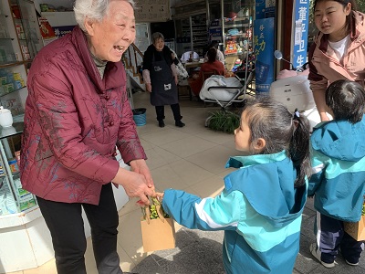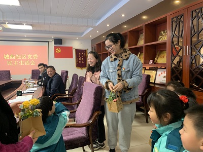 本网讯 3月7日上午,闵家幼儿园开展了“阳春三月,最美女神”社区送花活动。在园行政及老师的带领下,中班组的孩子们对周边城西社区、银行、诊所、超市、环卫工等工作的女性同胞献上了自己亲手做的花,他们用自己的方式向社区的女性劳动者们表达了深深的敬意,并送上真挚的祝福!看着孩子们天真烂漫的笑容,在场的每个人如沐春风,接过一双双小手送来的鲜花,高兴得合不拢嘴,拉着孩子们的手连声道谢。(通讯员戴欢妮 林志群 酉海花)