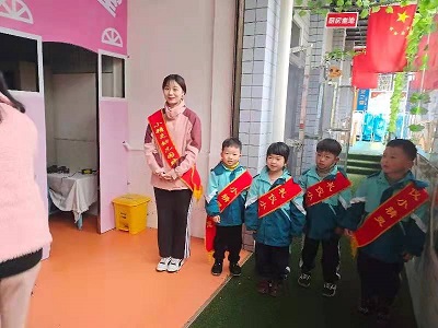 本网讯 “爷爷奶奶早上好!”“叔叔阿姨早上好!”“小朋友早上好!3月3日闵家幼儿园开展了“文明礼仪小天使”晨迎活动。大一班8名幼儿在2位值班老师的带领下早早地来到“文明礼仪岗”,他们排成一列,面带微笑,身披红色的绸带,神气地站在自己的“工作岗位”上,以热情、大方的笑脸迎接每一位家长和同伴,同时一声声亲切、甜美、响亮的问候声换来了同伴和家长的热情回应,他们成了闵家幼儿园一道亮丽的风景线。 明礼仪是我们中华民族的传统美德,小朋友虽然年纪小,但是文明、礼仪却牢牢地记在了心头。(通讯员 戴欢妮 林志群 酉海花)