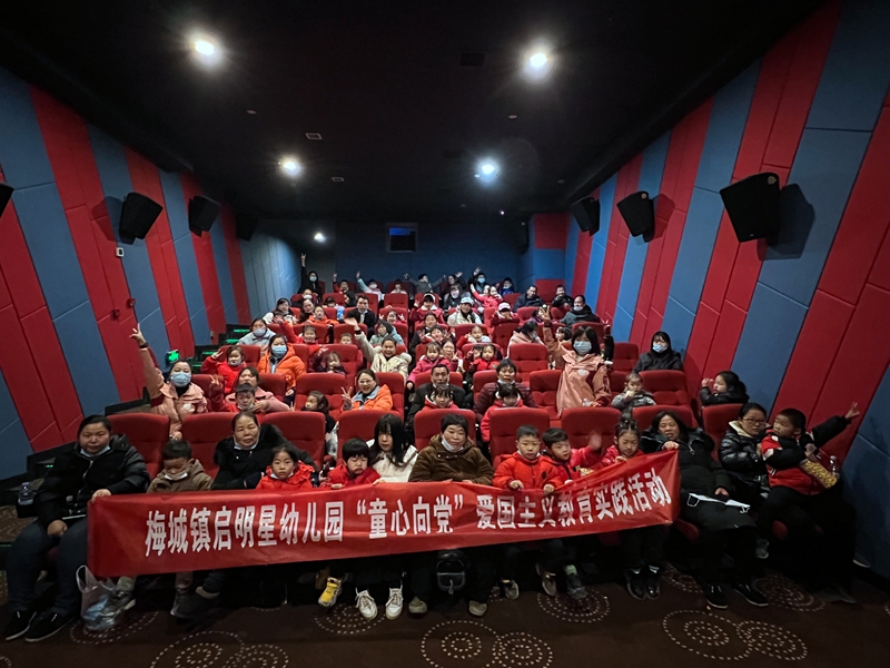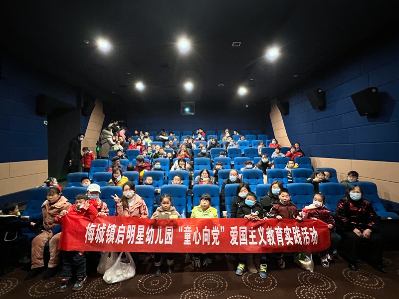 本网讯 为庆祝中国共产党成立100周年,激发幼儿的爱国主义情怀,1月11日上午,梅城镇启明星幼儿园组织全园幼儿及家长开展了“童心向党 快乐成长”观影活动。