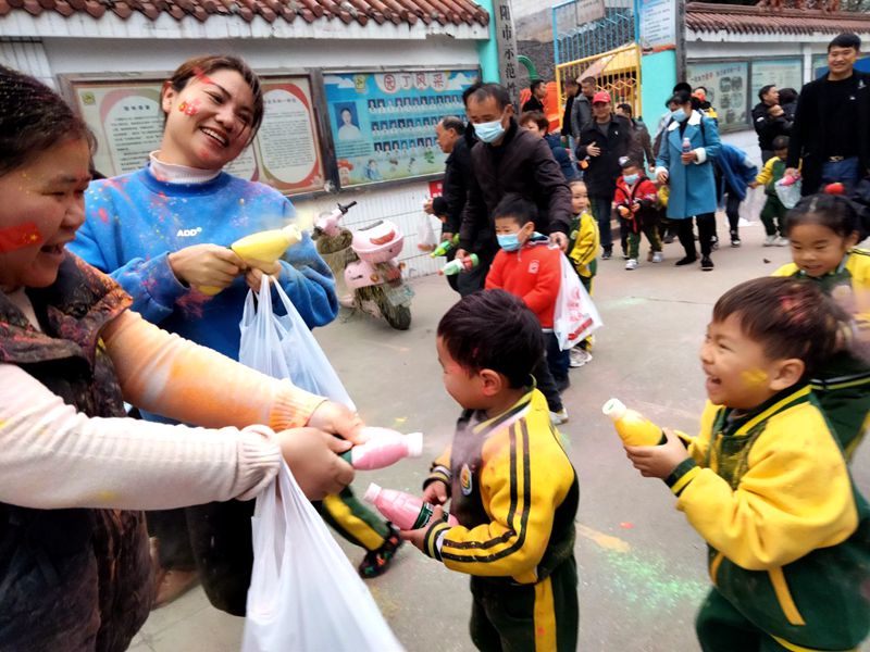 本网讯 12月10日上午,江南镇中心幼儿园全体师生及家长开展了第二届亲子彩虹跑。 一段动感的暖身舞《运动真奇妙》拉开了活动序幕,该园园长廖迎亚宣布活动正式开始。中一班黄悦可迫不及待地说道:“我最喜欢王老师了,妈妈等下我要给她多撒点粉,嘿嘿。” 彩虹跑全程5公里,共设黄-绿-蓝-橙-红五个彩色站。只见孩子们在站点嬉戏着,脸上洋溢着幸福的微笑。 “快看!我的彩虹老师。”中一班的王泽坤小朋友说道。 “对!还有我的彩虹爸爸。还有你是彩虹王子芾啦!” 此次活动结束后,该园的微信班级群也热闹非凡。中一班的石芮橙爸爸在微信班级群分享道:“今天参加江南镇中心幼儿园第二届彩虹跑。也是第二次参加江南镇中心幼儿园的彩虹跑。何其有幸能参加两届,感谢学校精心准备,让每个家长又一次陪伴孩子们度过了个愉快的上午,使更多80.90后家长在面对社会重重压力下,更好的解压。能够让学校老师和家长更好地沟通交流。能够让家长与家长共同探讨育儿经验,能够让孩子与孩子增进友情。”(通讯员 王艳青)