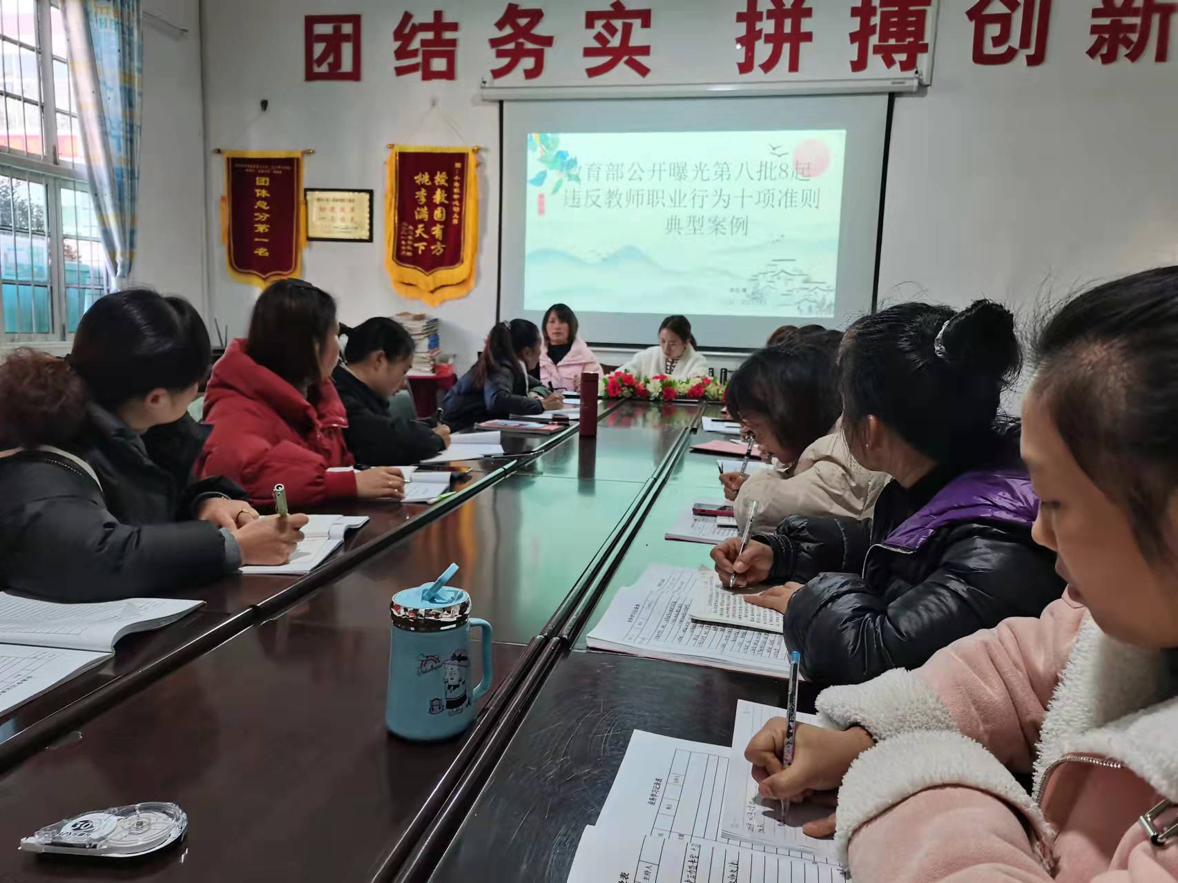 随后,全体教职工共同了解了《教育部公开曝光第八批8起违反教师职业行为十项准则典型案例》,李红周主任对教师思想政治、业务能力、廉洁从教等方面提出具体要求,要求老师们自省自查,时刻警醒自己,坚决杜绝负面行为现象。