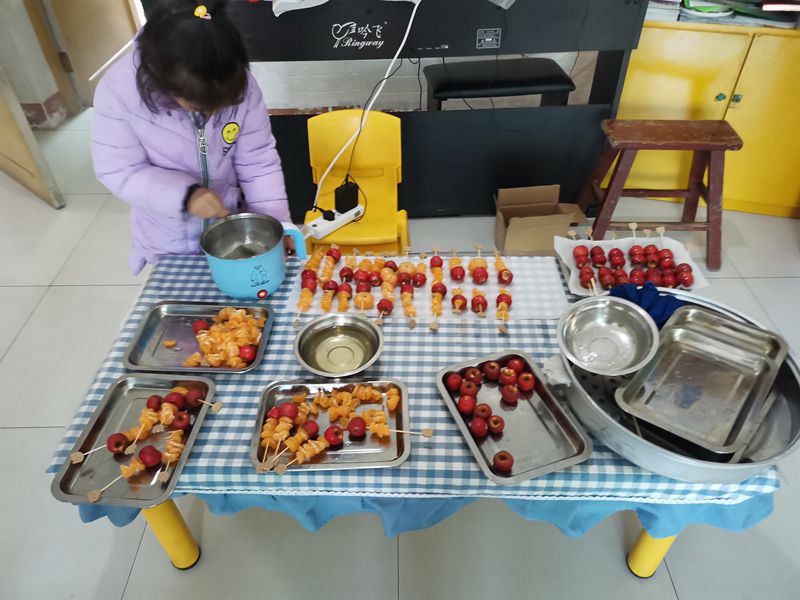 本网讯 “都说冰糖葫芦儿酸,酸里面它裹着甜。都说冰糖葫芦儿甜,可甜里面它透着酸……”一首《冰糖葫芦》勾起了多少人的童年记忆,又让多少人留恋它的酸甜。12月1日,洞市幼儿园大二班开展了“用甜甜的心情去品冬天的味道——制作冰糖葫芦”的活动。 上午10:30左右,教师以视频的方式给孩子简单地讲解冰糖葫芦的来历以及制作方法,孩子们就迫不及待的和老师一起行动起来了,洗、剥、切、串、熬、蘸,在老师的帮助下,孩子们个个大显身手,看“开口笑的橘子”“山楂红得像灯笼”……看着浇满了甜甜糖汁的糖葫芦,还不由得去闻一闻。“好香啊!”“看着真好吃!”“老师你尝尝我的吧!”整个教室都弥漫着甜甜的味道。 通过这次活动,孩子们提高了自己的动手能力,学会了分享与珍惜,更希望洞市幼儿园每个孩子的生活都像冰糖葫芦一样,甜甜美美,幸福圆满。(通讯员 黄敏辉)